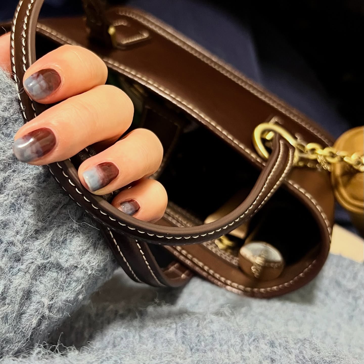 ラメ入りのこちらのカラー。写真は2度塗りした画像です。 一度塗りは本当に自爪にラメがのったぐらいで、ほぼ色つきません笑 オフィスなど厳しめなら一度塗りがいいかもです。