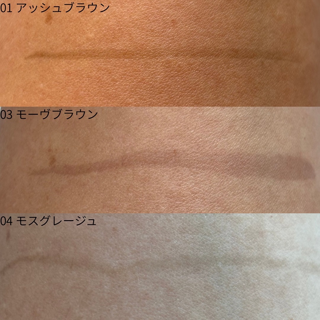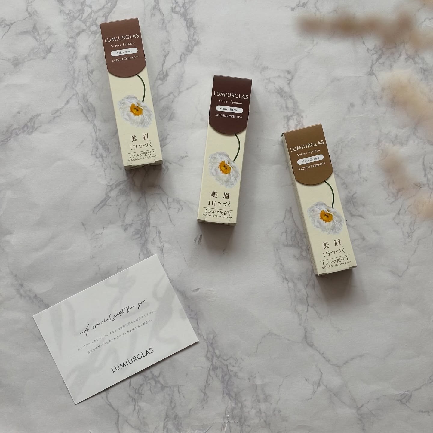 - 01.超極細ベビーブラシ採用 LUMIURGLASベルベットライナーにも使用しているSkill-less Brush🄬の描きやすさはそのままに、眉専用の超極細ベビーブラシにアップデート。手先の器用さに左右されず、思い通りの眉を自由自在に。 02.ウォータープルーフ 『水、涙、汗、皮 脂、摩擦』から守る独自処方の「EX5 ブロックインク®」を開発。朝描いた美眉が1日つづきます。(※2) 03.京都産シルク※1配合 どこまでもなめらかな描き心地を実現する、京都産シルク※1を配合した独自開発リキッド。 04.カラーバリエーション 自然に色づくこだわりの ニュアンスカラーは全4色 。単品使用だけでなく、いつもの眉メイクの仕込みカラーにもおすすめ。 (※1)シルク(保湿成分)(※2)効果には個人差があります。(当社調べ)