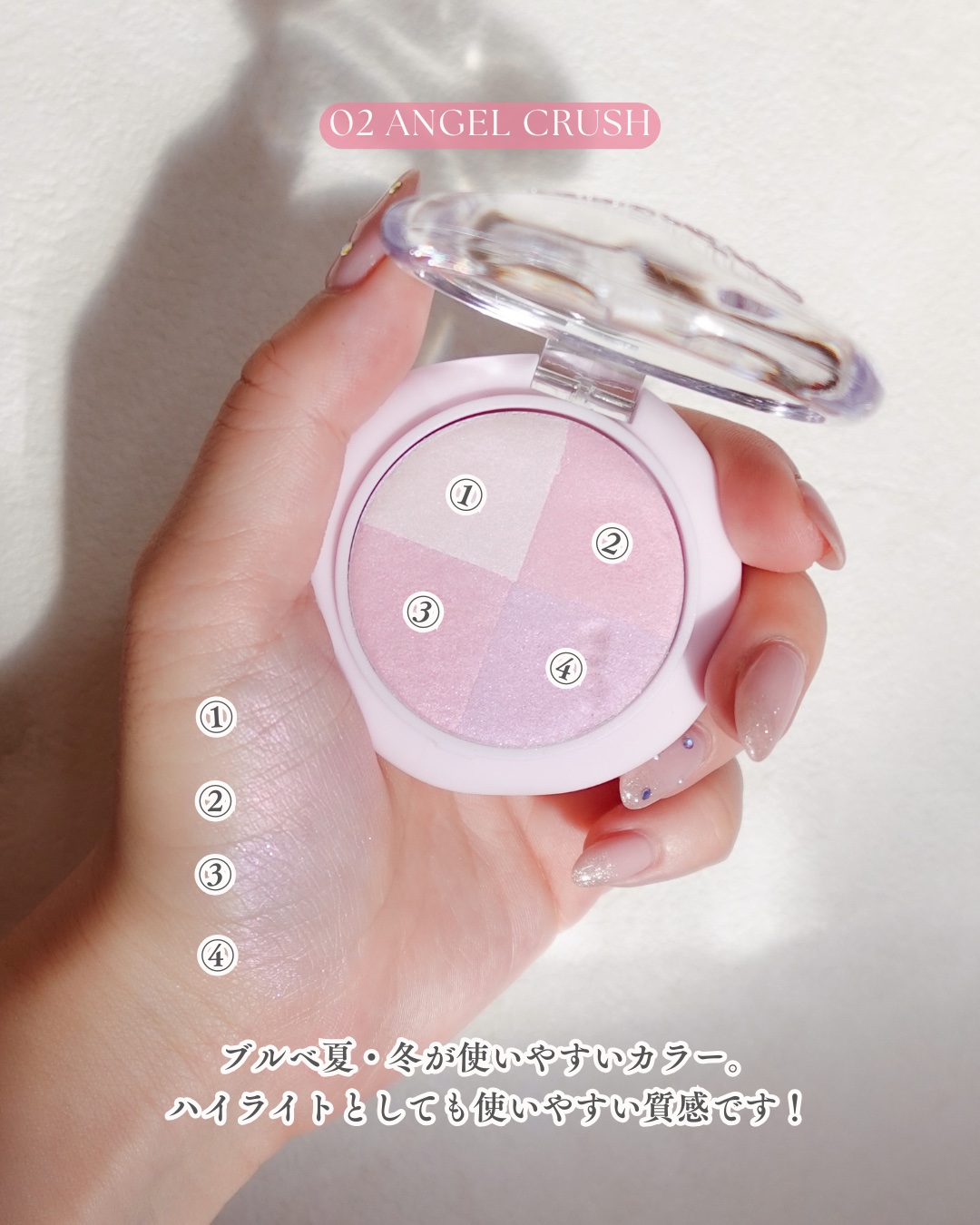 UVとUVではないものがありますが、どちらもツヤ肌がずっと続くスキンケアのようなみずみずしいメイクアップベースです♡ 血色UP、トーンUPなどカラーによって効果が違うのでなりたい肌やパーソナルカラーを考えて購入してみてくださいね! ※01(UV)と02はブルベ向き ※02(UV)と04はイエベ向き