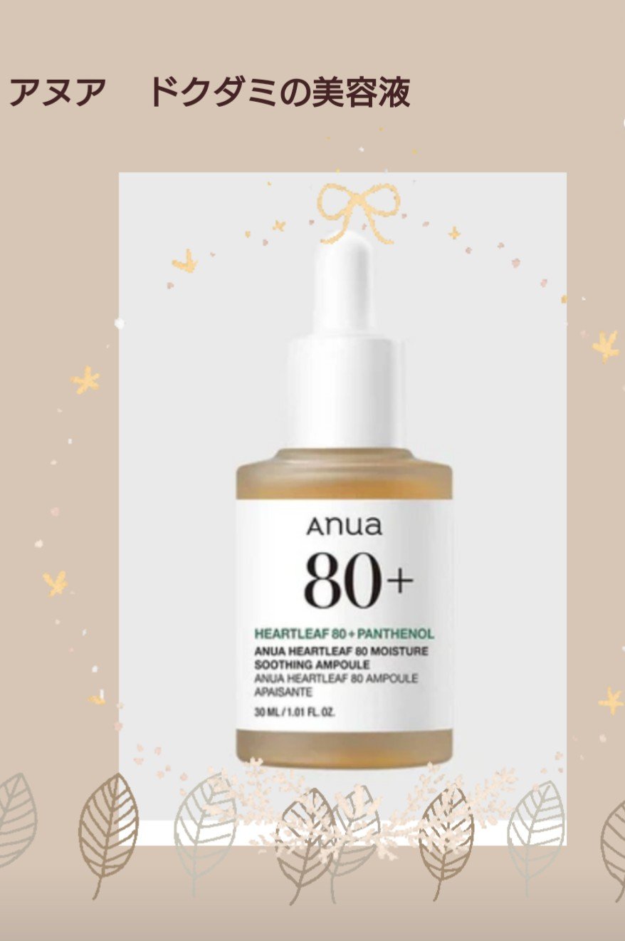 ニキビや肌荒れの鎮静をしてくれるドクダミエキスが80%配合されていて、伸びがよく、香りも無臭なので使いやすかったです!!Anuaの美容液は種類が多くて迷われるかもしれませんが、こちらは赤みや肌荒れ、毛穴が気になる方におすすめのアイテムです!敏...