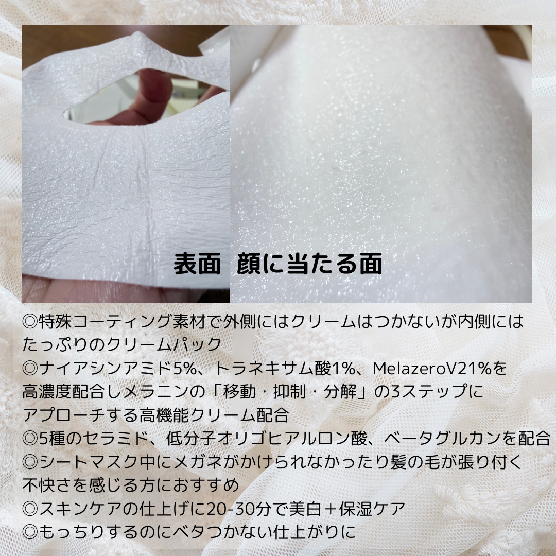 | クリームが満遍なくシートに付いていて、ぴったりと密着し全顔覆い尽くしてしっかりケアできる🤲🏻 | 詳細を見る | |||