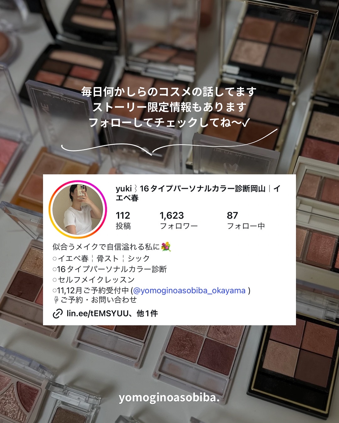お世話になっておりますビューティーフィッターyukiです岡山・倉敷・福山16タイプパーソナルカラー診断ビューティーフィッターカウンセリング7タイプ骨格診断顔タイプ診断1・2月ご予約受付中です🌷(1月残りわずかです)𓈒𓂂𓂃◌𓈒𓐍Viseeネンマ...