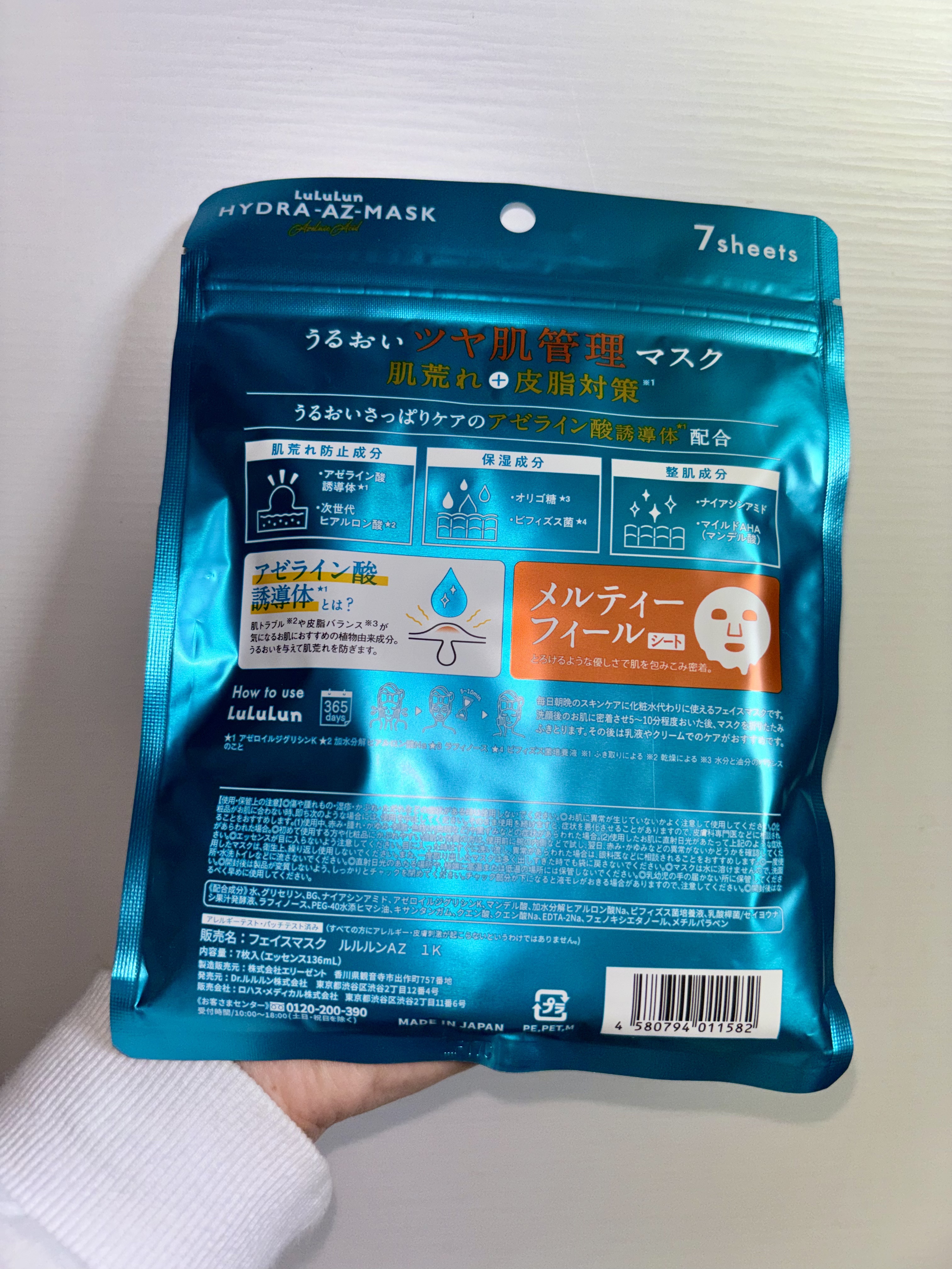- 肌荒れ・皮脂ケア※1と健やかな肌の土台※2美容を叶える、アゼライン酸誘導体*1配合のうるおいツヤ肌管理マスクです。 肌荒れや肌の赤み、毛穴目立ちが気になる方に。 アゼライン酸*1×ナイアシンアミド*2+次世代ヒアルロン酸*3配合で、肌荒れをケアし、角質層をみずみずしいうるおいで満たします。 さらに肌表面でゆっくりと働くマイルドAHA*4が、古い角質をやわらげ、キメを整えることで、つるんとツヤめく素肌へ導きます。 シートはとろけるように肌に密着するメルティーフィールシートを採用。 シートが最も柔らかく感じられる液量を研究し、まるで水の層に包まれているような心地よさを実現しています。 (※1 ふき取りによる ※2 角質層のこと *1 肌荒れ防止成分 アゼロイルジグリシンK *2 整肌成分 *3 肌荒れ防止成分 加水分解ヒアルロン酸Na *4 整肌成分 マンデル酸)