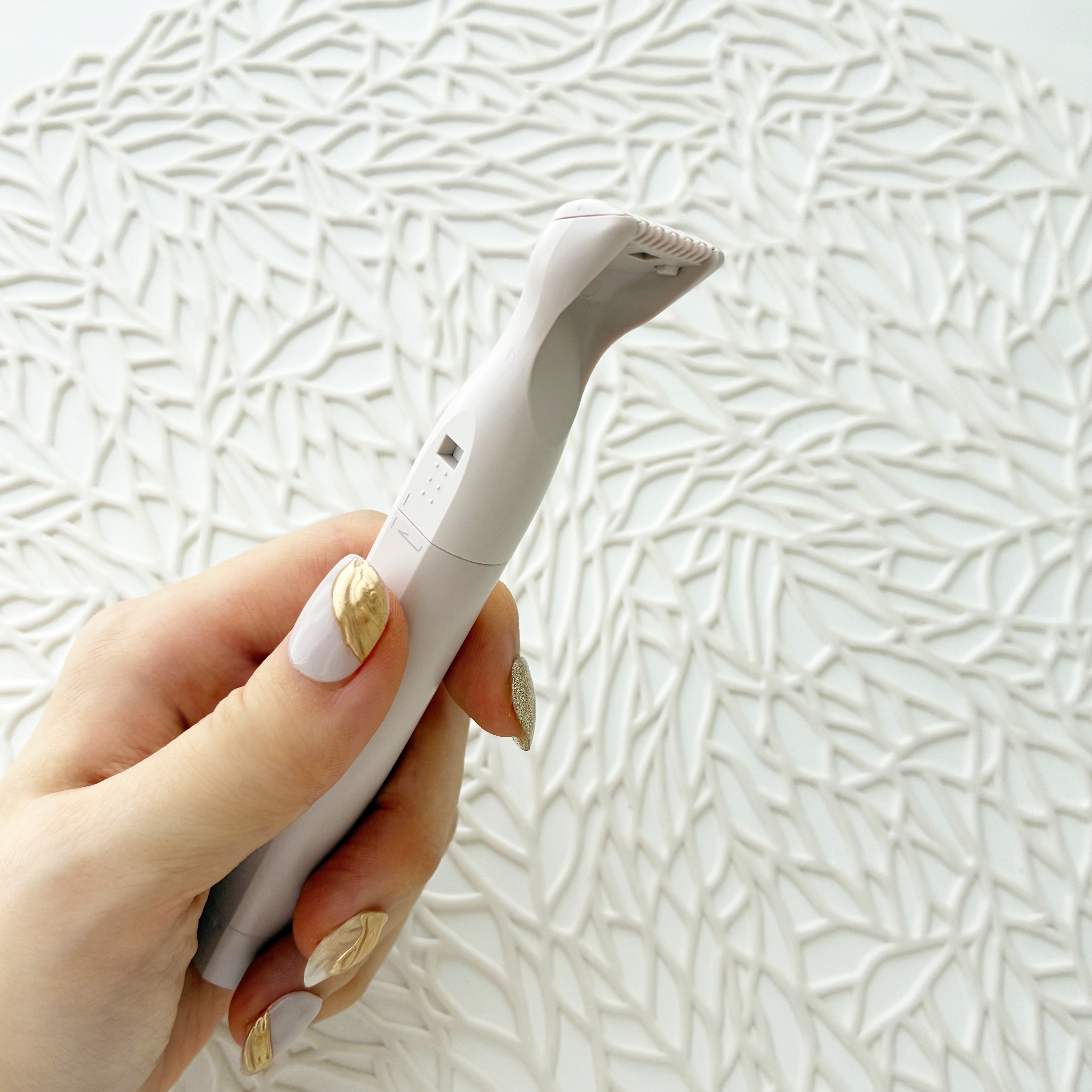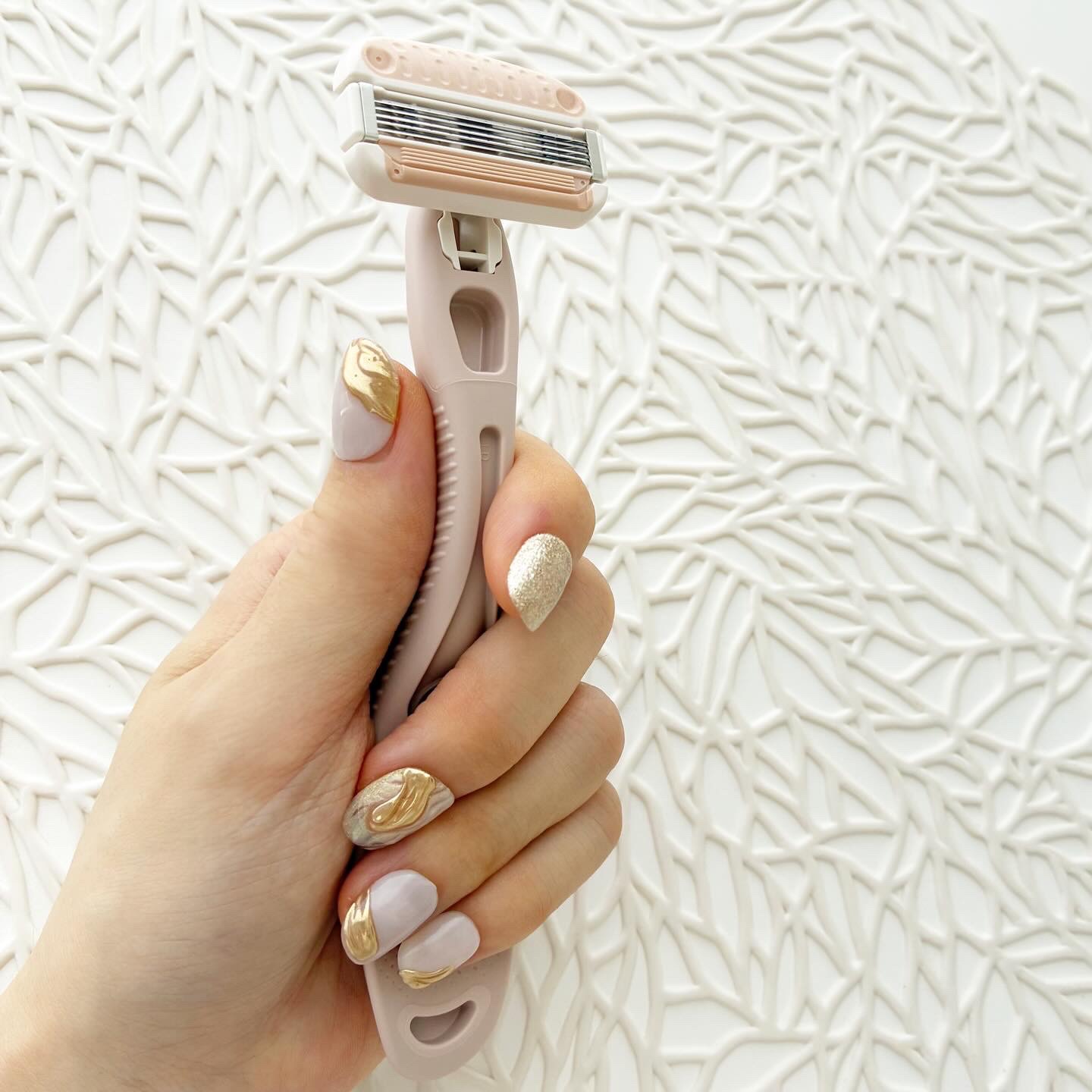 やさしくなめらかな剃り心地のボディ用カミソリなんだそう🌟 持ちやすい!肌の凹凸に合わせてヘッドが左右前後に動くので、剃りたい部分になめらかに使えてストレスのない使用感なのがよかったです🥰 デリケートな部分の肌の負担を減らすため、肌あたりがやさしい音波振動を採用しているとのこと🎵