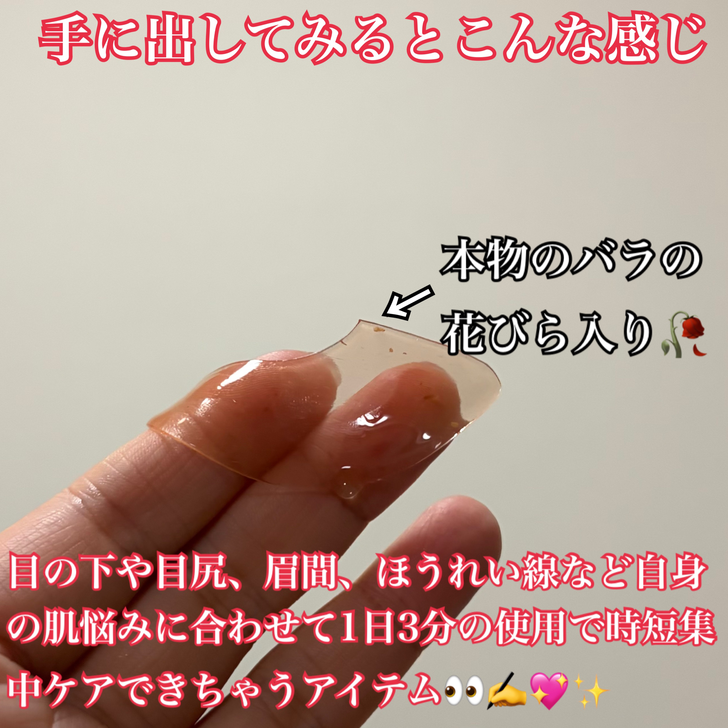 | 目元ケアランキング第54位 | ぷるんとしたジェリーのようなゲル状のアイパッチはみずみずしくて、ふわりとローズのいい香り!🥀 | 詳細を見る | |