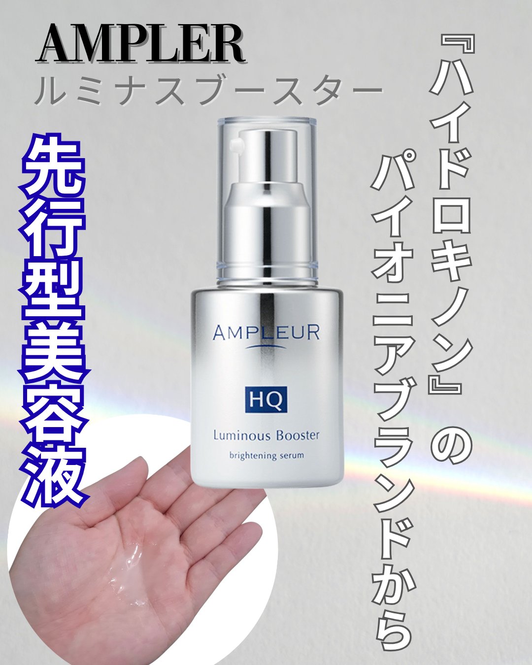 ルミナスHQブースターは気になるしつこいくすみを断ち切る先行型の美容液! 朝晩の洗顔後に2~3プッシュを手にとり、顔全体になじませることで、土台からくすみの元を断ち、ブレない透明感を引き出してくれるそう! ハイドロキノンとレチノールが配合されているなんて攻めてるな~と思いましたし、刺激を感じそうで心配でした💦 その後に化粧水を塗るといつもよりもちっとした仕上がりになった気がします!