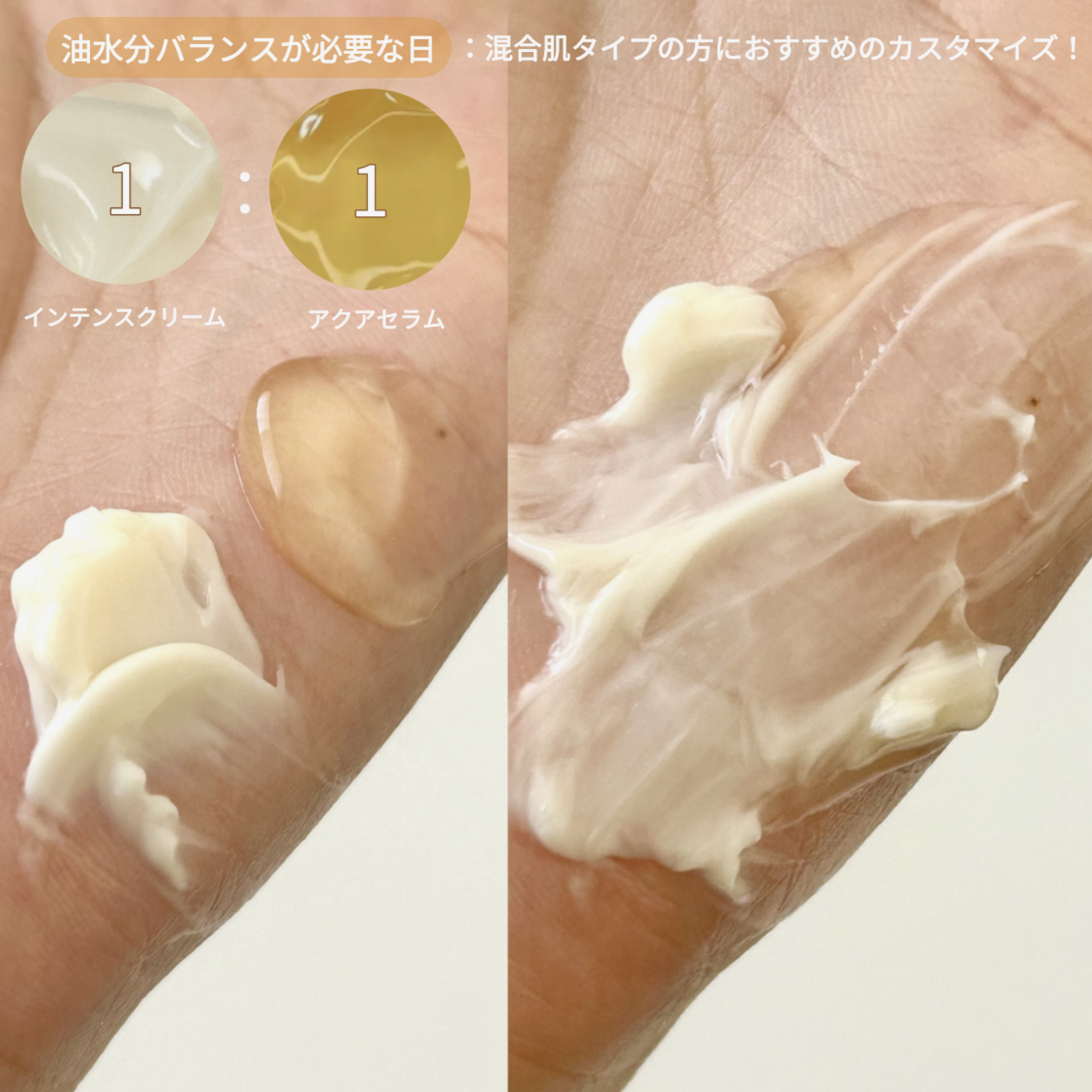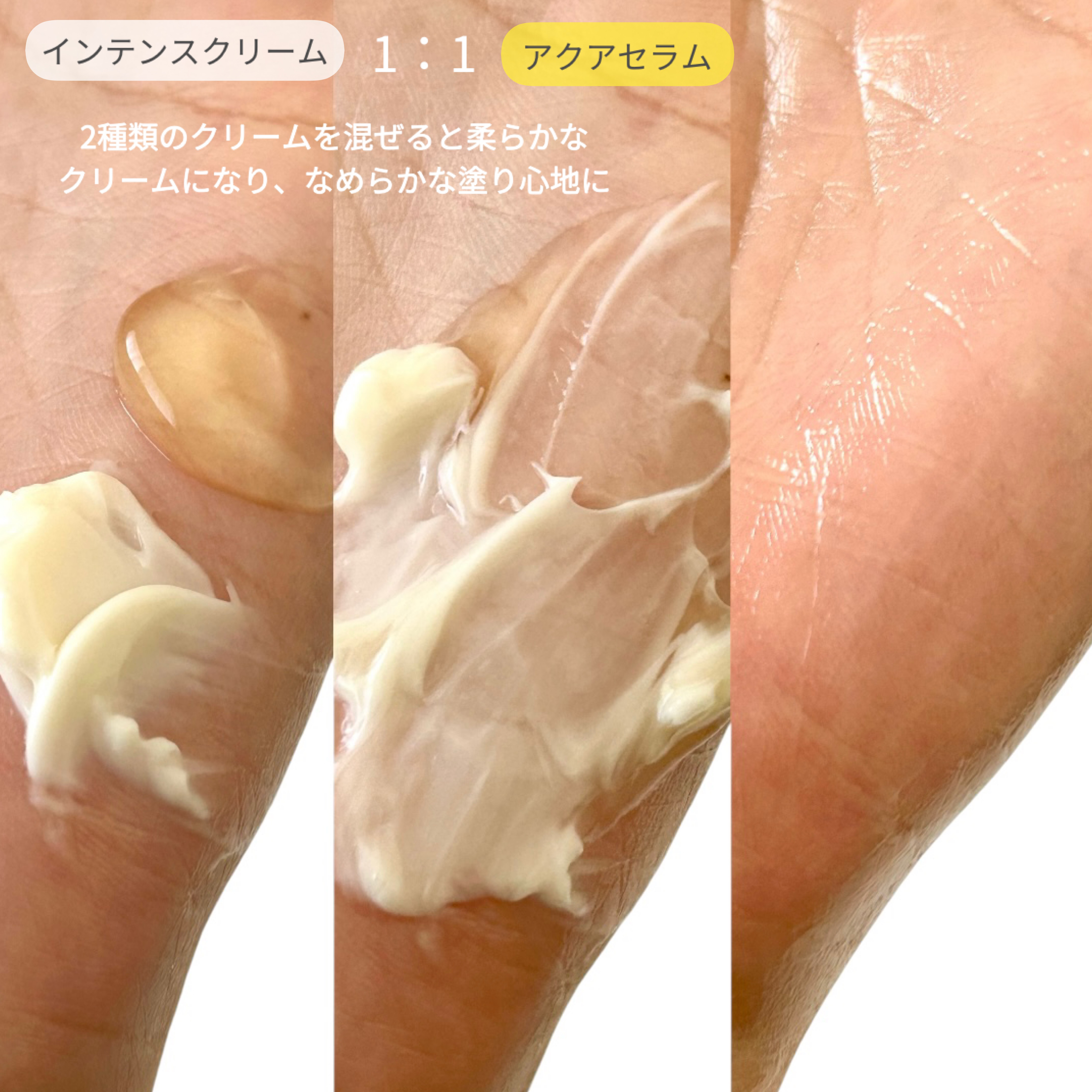 - アクサセラムとインテンスクリームのデュアル・フォーミュラで肌のタイプやコンディションに合わせて 比率を調節してカスタマイズ・ケアします。 ・アクアセラム:ヒアルロン酸、パンテノール、ツボクサエキス*が含まれた、さっぱりとした使用感で肌に水分を与え肌のキメを整えます。*ヒアルロン酸・パンテノール・ツボクサエキス(いずれも保湿成分) ・インテンスクリーム:イタリア産ホワイトトリュフ*が含まれた、もっちりした使用感で肌にうるおいを与えツヤのあるもち肌へ導きます。*ツベルマグナツムエキス(保湿成分) イタリアヴィーガン認証V-LABEL取得 皮膚低刺激テスト済み *全ての方に皮膚刺激が発生しないということではありません。 【使い方】 1. 洗顔後、スパチュラで肌のコンディションによって、セーラムとクリームを適量を取り、 ミックスしてから顔全体に優しく塗り広げ、 吸収させます。※ 必要に応じて、アクアセラムとインテンスクリームは単品でも使用できます。 【使用上の注意】 お肌に異常が生じていないかよく注意して使用してください。化粧品がお肌に合わないとき即ち次のような場合には、使用を中止してください。そのまま使用を続けますと、症状を悪化させることがありますので、皮ふ科専門医等にご相談されることをおすすめします。 (1)使用中、赤味、はれ、かゆみ、刺激、色抜け(白斑等)や黒ずみ等の異常があらわれた場合 (2)使用したお肌に、直射日光があたって(1)のような異常があらわれた場合