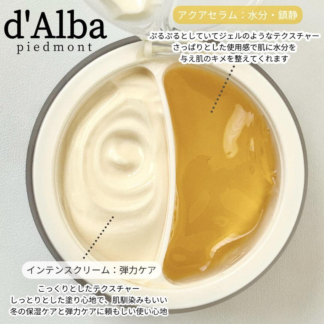 d’Albaホワイトトリュフダブルセラムアンドクリーム🤍その日の肌コンディションや部位ごとにカスタムできる2in1クリームです✨🎀アクアセラム▷ジェルのようなみずみずしい使用感🎀インテンスクリーム▷コクのあるテクスチャでなめらかにフィット🎀...