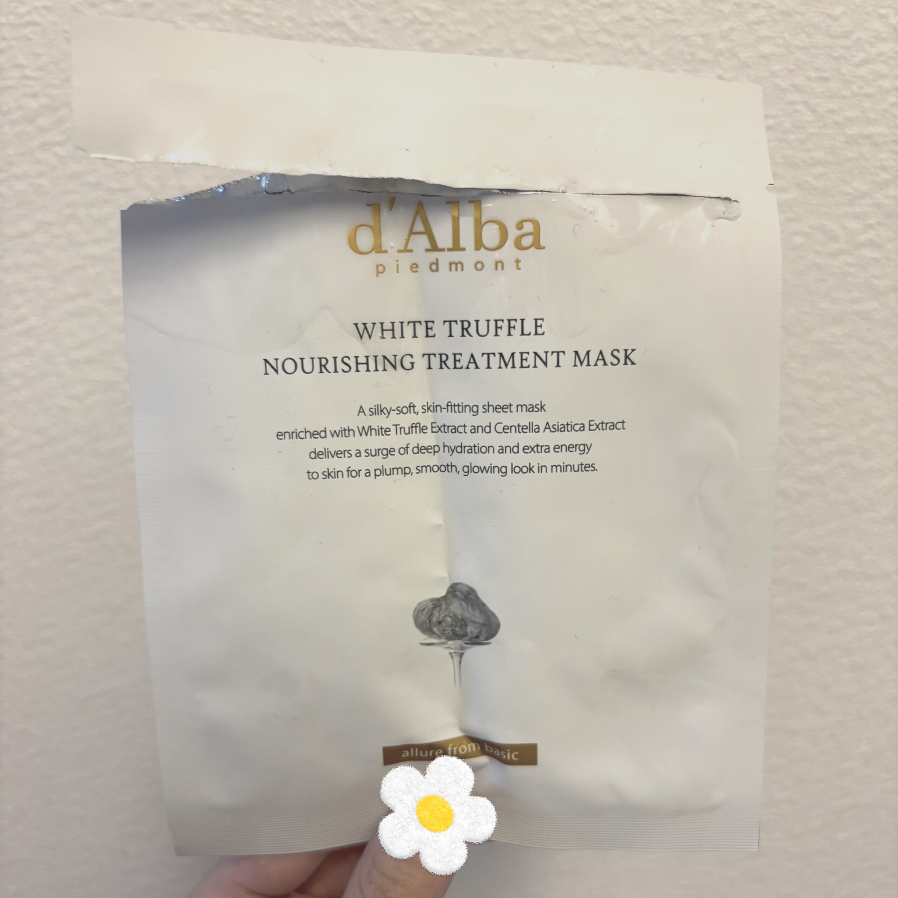 ダルバホワイトトリュフナリシングトリートメントマスク楽天スーパーセールにて¥1000🉐口コミ評価の高いダルバのパック✨買い回りポイント的にもバッチリ👌な¥1000ぽっきりで購入しました🔅無色透明でとろみのある液に、薄過ぎず厚過ぎずなマスクが浸...