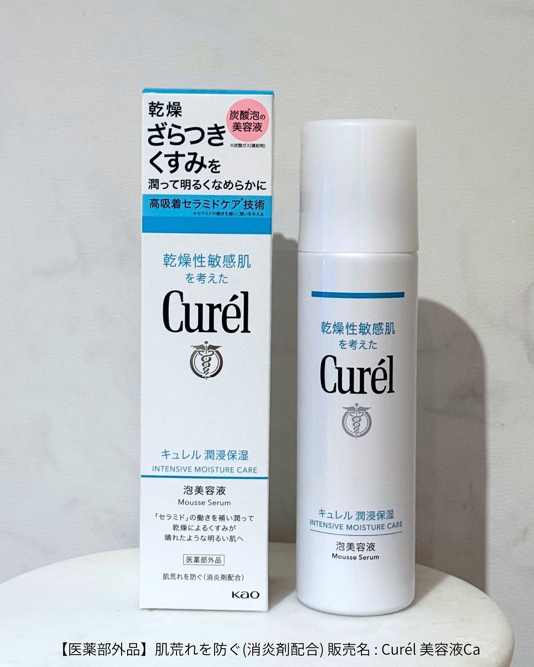 - 【敏感肌用】 乾燥によるざらつきくすみを潤いで満たし、くすみが晴れたような明るいなめらかさのある肌へ導く炭酸*3泡の美容液。 ● 高吸着セラミドケア*2技術 セラミド機能成分*7(保湿)と炭酸*3を含む濃密泡の美容液が、 肌の角層深くまで素早く浸透し保水する ● 潤い成分(セラミド機能成分*7、ユーカリエキス)配合 ● 有効成分(グリチルリチン酸ジカリウム)配合。肌荒れを防ぎます ● 伸ばした瞬間とろけて、肌と一体化するようになじむ使い心地 *2 セラミドの働きを補い、潤いを与える *3 炭酸ガス(噴射剤) *7 ヘキサデシロキシPGヒドロキシエチルヘキサデカナミド <乾燥性敏感肌を考えた低刺激設計> ● 無香料 ● 無着色 ● アルコールフリー(エチルアルコール無添加) ● アレルギーテスト済※ ● 乾燥性敏感肌の方の協力によるパッチテスト済※ パッチテスト:皮膚に対する刺激性を確認するテストです。 ※すべての方にアレルギーや皮膚刺激が起こらないというわけではありません 商品に関するお問い合わせ 受付時間9:00~17:00(土曜・日曜・祝日除く) *製品の誤飲・誤食など緊急の場合は、受付時間外でもお電話ください キュレル:0120-165-698