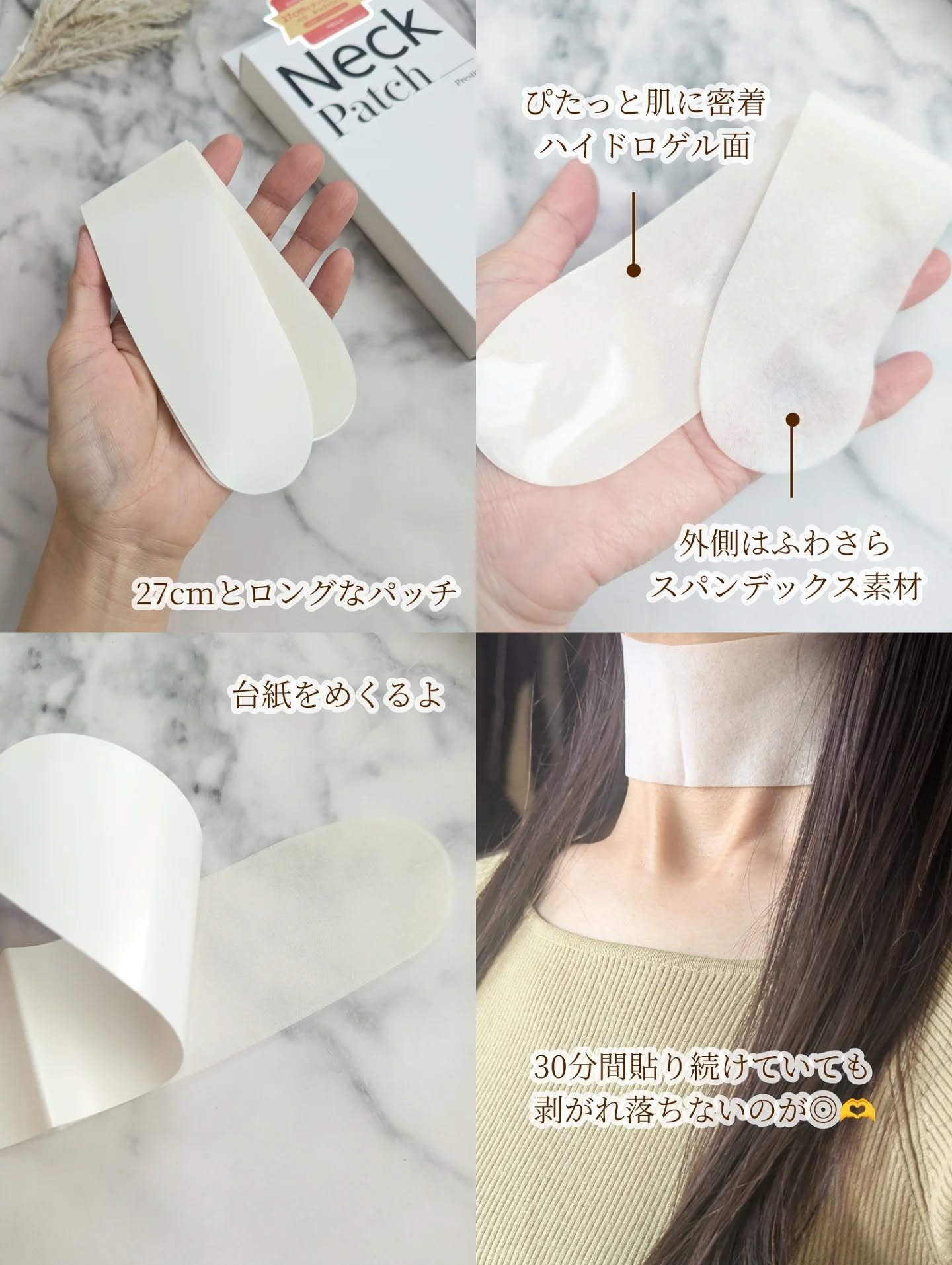 ..▶︎VELLA ネックケセットエイジングサイン*の気になる肌をケア出来るおすすめアイテムのご紹介🫶✴︎プレステージネックパッチ✴︎27cmのハイドロゲルパッチ🤍肌にピタッと高密着で液ダレなどもなく使いやすい👌27cmと結構長さがあるので首...