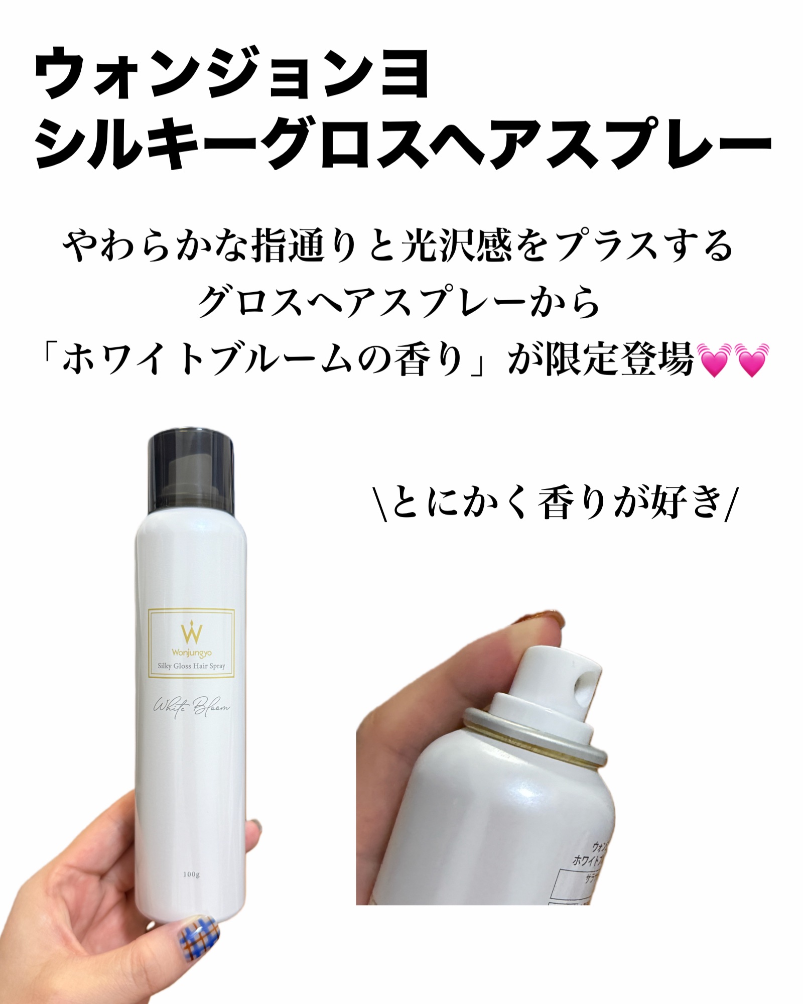 Wonjungyo Hairのシャンプーとトリートメントの香りがオードトワレになったんです✨ スパークリングペアーの香りはシャンパンにみずみずしさ溢れる洋梨を加えたようなフルーティーで柔らかい甘さのある香り。 ホワイトブルームの香りは清潔感のある白い花々に、魅惑的なアンバーをブレンドした、爽やかなフローラル系の香り。