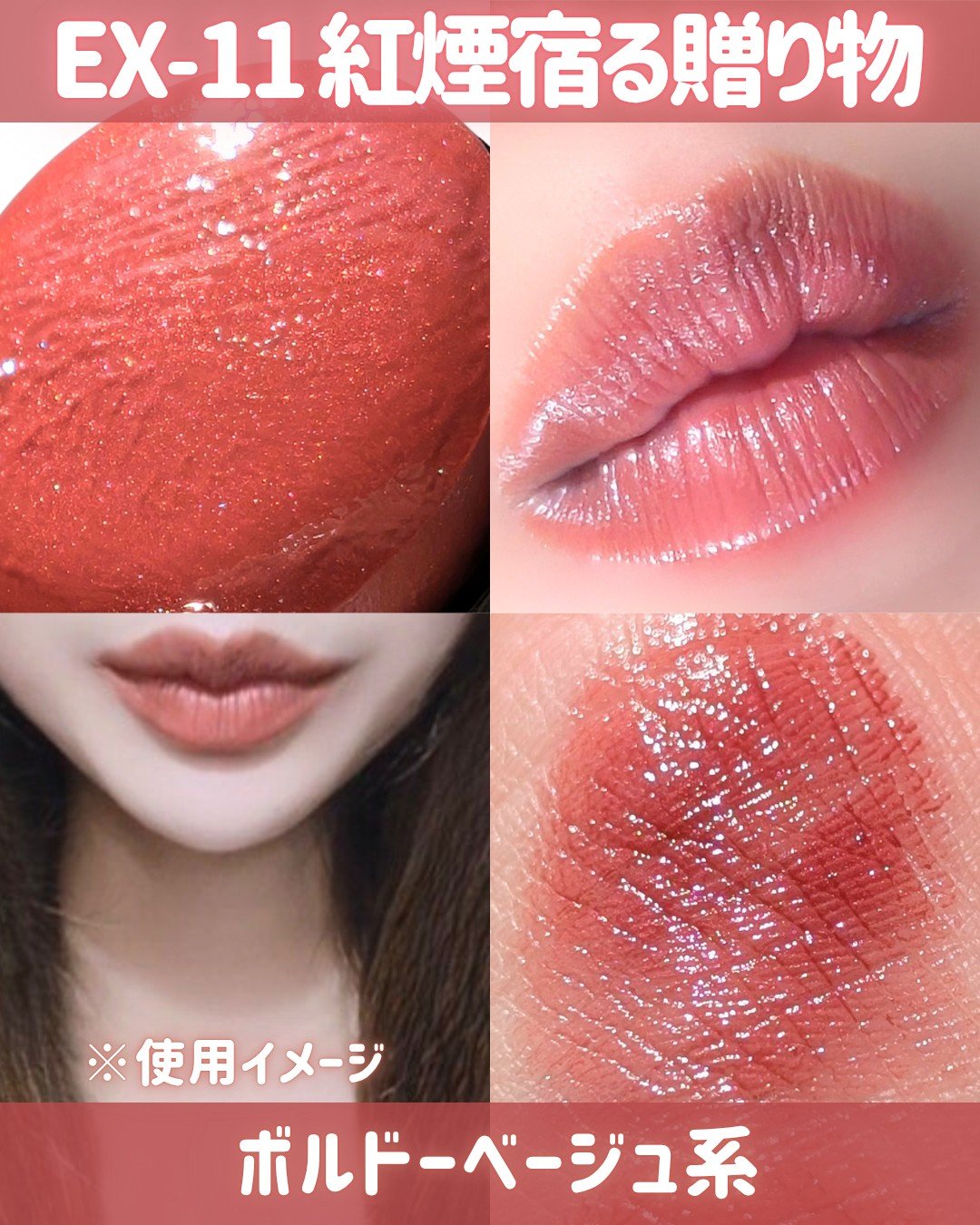 - <01 欲望の塊> テトライソステアリン酸ジペンタエリスリチル、トリ(カプリル酸/カプリン酸)グリセリル、オクチルドデカノール、ラウロイルグルタミン酸ジ(フィトステリル/オクチルドデシル)、ビスアルキル(C16-18)グリセリルウンデシルジメチコン、イソノナン酸イソトリデシル、水添ポリイソブテン、ラウロイルグルタミン酸ジ(オクチルドデシル/フィトステリル/ベヘニル)、パラフィン、合成ワックス、ダイマージリノール酸(フィトステリル/イソステアリル/セチル/ステアリル/ベヘニル)、マイクロクリスタリンワックス、水添マイクロクリスタリンワックス、ヒドロキシステアリン酸エチルヘキシル、トコフェロール、ホホバ種子油、オリーブ果実油、アーモンド油、(エチレン/プロピレン)コポリマー、ポリエチレン、ジメチコン、(+/-)(チタン/酸化チタン)焼結物、マイカ、ラウロイルアスパラギン酸Na、ラウロイルリシン、塩化亜鉛、酸化チタン、酸化鉄、水酸化Al、硫酸Ba、トリイソステアリン酸イソプロピルチタン、酸化スズ、ホウケイ酸(Ca/Al)、合成フルオロフロゴパイト、黄4、黄5、赤104(1)、赤201、赤202 <02 ピンクバナナ> テトライソステアリン酸ジペンタエリスリチル、トリ(カプリル酸/カプリン酸)グリセリル、オクチルドデカノール、ラウロイルグルタミン酸ジ(フィトステリル/オクチルドデシル)、ビスアルキル(C16-18)グリセリルウンデシルジメチコン、イソノナン酸イソトリデシル、水添ポリイソブテン、ラウロイルグルタミン酸ジ(オクチルドデシル/フィトステリル/ベヘニル)、パラフィン、合成ワックス、ダイマージリノール酸(フィトステリル/イソステアリル/セチル/ステアリル/ベヘニル)、マイクロクリスタリンワックス、水添マイクロクリスタリンワックス、ヒドロキシステアリン酸エチルヘキシル、トコフェロール、ホホバ種子油、オリーブ果実油、アーモンド油、(エチレン/プロピレン)コポリマー、ポリエチレン、ジメチコン、(+/-)(チタン/酸化チタン)焼結物、マイカ、ラウロイルアスパラギン酸Na、ラウロイルリシン、塩化亜鉛、酸化チタン、酸化鉄、水酸化Al、硫酸Ba、トリイソステアリン酸イソプロピルチタン、酸化スズ、ホウケイ酸(Ca/Al)、合成フルオロフロゴパイト、黄4、黄5、赤104(1)、赤201、赤202 <03 陽炎> テトライソステアリン酸ジペンタエリスリチル、トリ(カプリル酸/カプリン酸)グリセリル、オクチルドデカノール、ラウロイルグルタミン酸ジ(フィトステリル/オクチルドデシル)、ビスアルキル(C16-18)グリセリルウンデシルジメチコン、イソノナン酸イソトリデシル、水添ポリイソブテン、ラウロイルグルタミン酸ジ(オクチルドデシル/フィトステリル/ベヘニル)、パラフィン、合成ワックス、ダイマージリノール酸(フィトステリル/イソステアリル/セチル/ステアリル/ベヘニル)、マイクロクリスタリンワックス、水添マイクロクリスタリンワックス、ヒドロキシステアリン酸エチルヘキシル、トコフェロール、ホホバ種子油、オリーブ果実油、アーモンド油、(エチレン/プロピレン)コポリマー、ポリエチレン、ジメチコン、(+/-)(チタン/酸化チタン)焼結物、マイカ、ラウロイルアスパラギン酸Na、ラウロイルリシン、塩化亜鉛、酸化チタン、酸化鉄、水酸化Al、硫酸Ba、トリイソステアリン酸イソプロピルチタン、酸化スズ、ホウケイ酸(Ca/Al)、合成フルオロフロゴパイト、黄4、黄5、赤104(1)、赤201、赤202 <04 パンプキンワイン> テトライソステアリン酸ジペンタエリスリチル、トリ(カプリル酸/カプリン酸)グリセリル、オクチルドデカノール、ラウロイルグルタミン酸ジ(フィトステリル/オクチルドデシル)、ビスアルキル(C16-18)グリセリルウンデシルジメチコン、イソノナン酸イソトリデシル、水添ポリイソブテン、ラウロイルグルタミン酸ジ(オクチルドデシル/フィトステリル/ベヘニル)、パラフィン、合成ワックス、ダイマージリノール酸(フィトステリル/イソステアリル/セチル/ステアリル/ベヘニル)、マイクロクリスタリンワックス、水添マイクロクリスタリンワックス、ヒドロキシステアリン酸エチルヘキシル、トコフェロール、ホホバ種子油、オリーブ果実油、アーモンド油、(エチレン/プロピレン)コポリマー、ポリエチレン、ジメチコン、(+/-)(チタン/酸化チタン)焼結物、マイカ、ラウロイルアスパラギン酸Na、ラウロイルリシン、塩化亜鉛、酸化チタン、酸化鉄、水酸化Al、硫酸Ba、トリイソステアリン酸イソプロピルチタン、酸化スズ、ホウケイ酸(Ca/Al)、合成フルオロフロゴパイト、黄4、黄5、赤104(1)、赤201、赤202 <05 ダークフィグ> テトライソステアリン酸ジペンタエリスリチル、トリ(カプリル酸/カプリン酸)グリセリル、オクチルドデカノール、ラウロイルグルタミン酸ジ(フィトステリル/オクチルドデシル)、ビスアルキル(C16-18)グリセリルウンデシルジメチコン、イソノナン酸イソトリデシル、水添ポリイソブテン、ラウロイルグルタミン酸ジ(オクチルドデシル/フィトステリル/ベヘニル)、