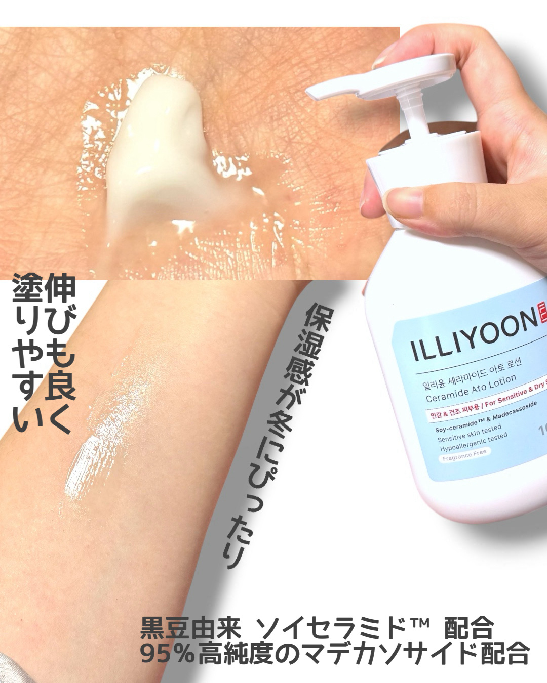 👶家族みんなで使える神ボディローション!【ILLIYOONセラミドアトローション】敏感肌用で使い心地が良い低刺激ヴィーガン処方💧黒豆由来ソイセラミド™が角層までうるおい届けて、マデカソサイドが肌を落ち着かせてくれる🌿ベタつかないのにしっとり保...