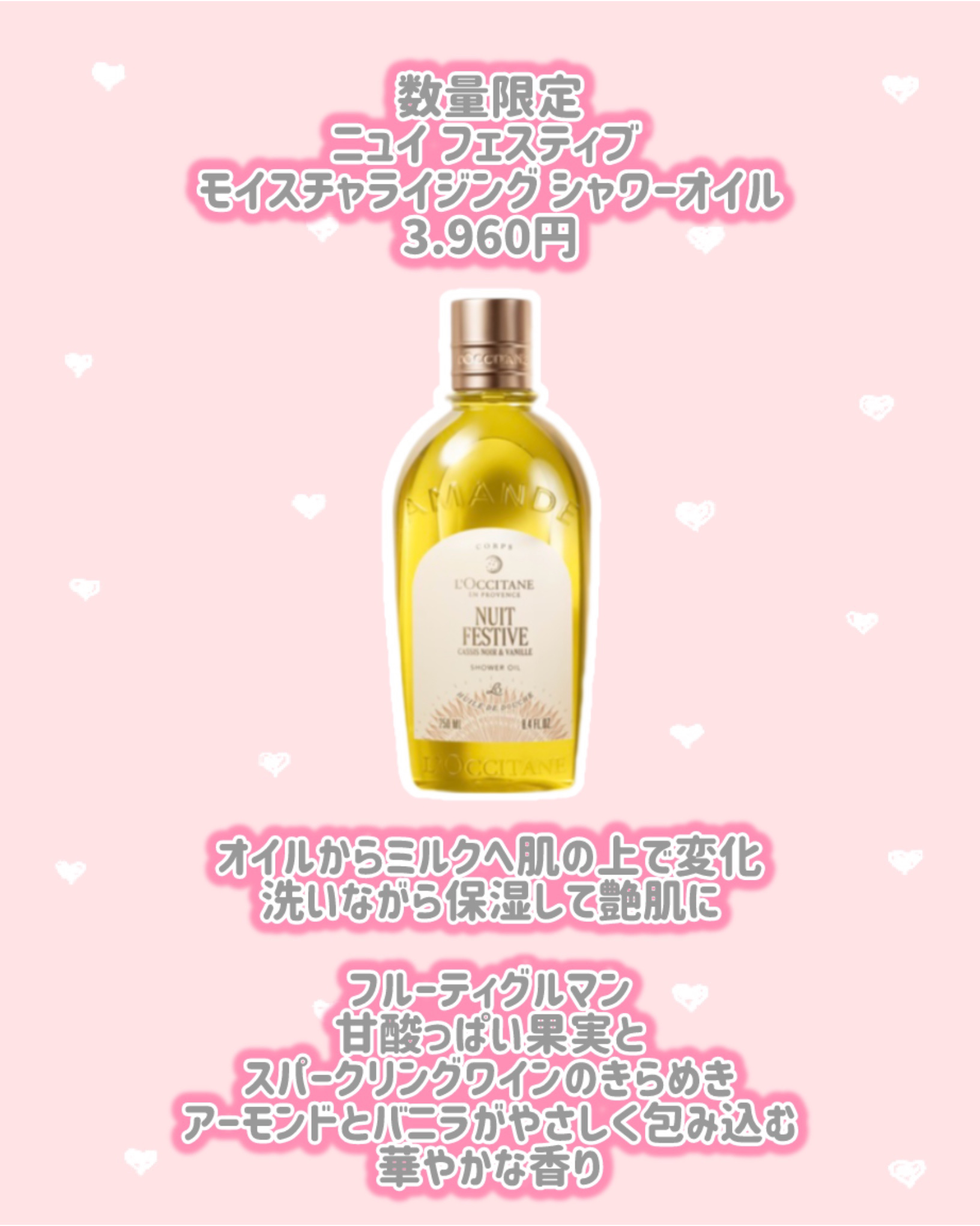L'OCCITANE アーモンド モイスチャライジングシャワーオイル | 3,960円 |