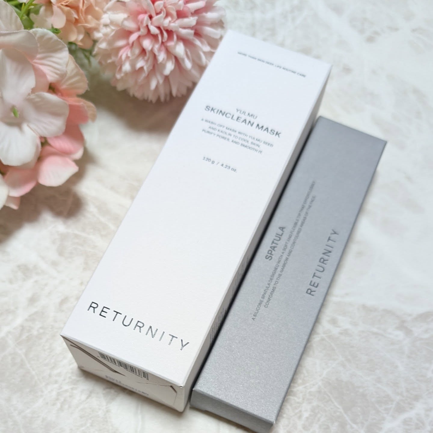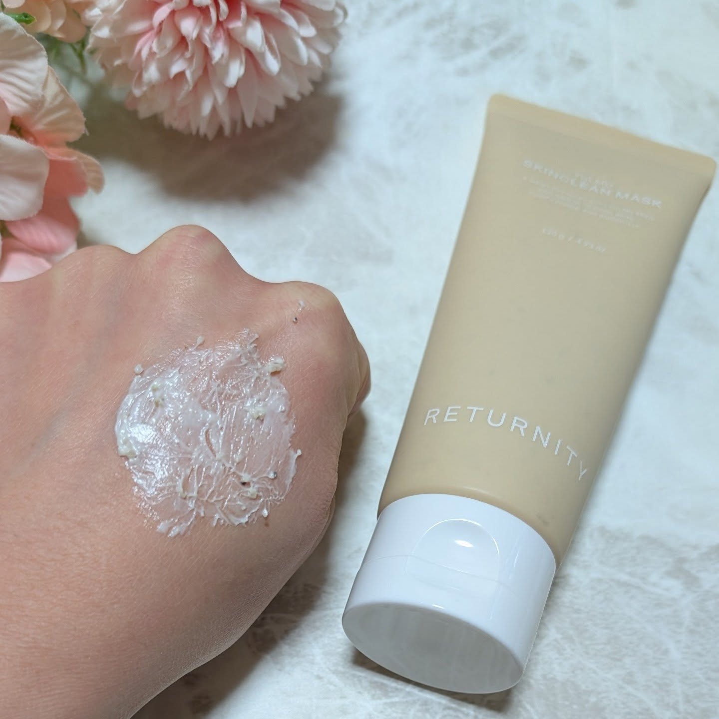 RETURNITYユルムスキンクリーンパックを使用しました。粒々感はあるものの、なめらかなテクスチャで肌にのばしやすく感じました。肌に塗っている間はひんやり冷たくて心地よく感じました。天然美容成分YULMU(はと麦)の粒がスクラブとして作用し...