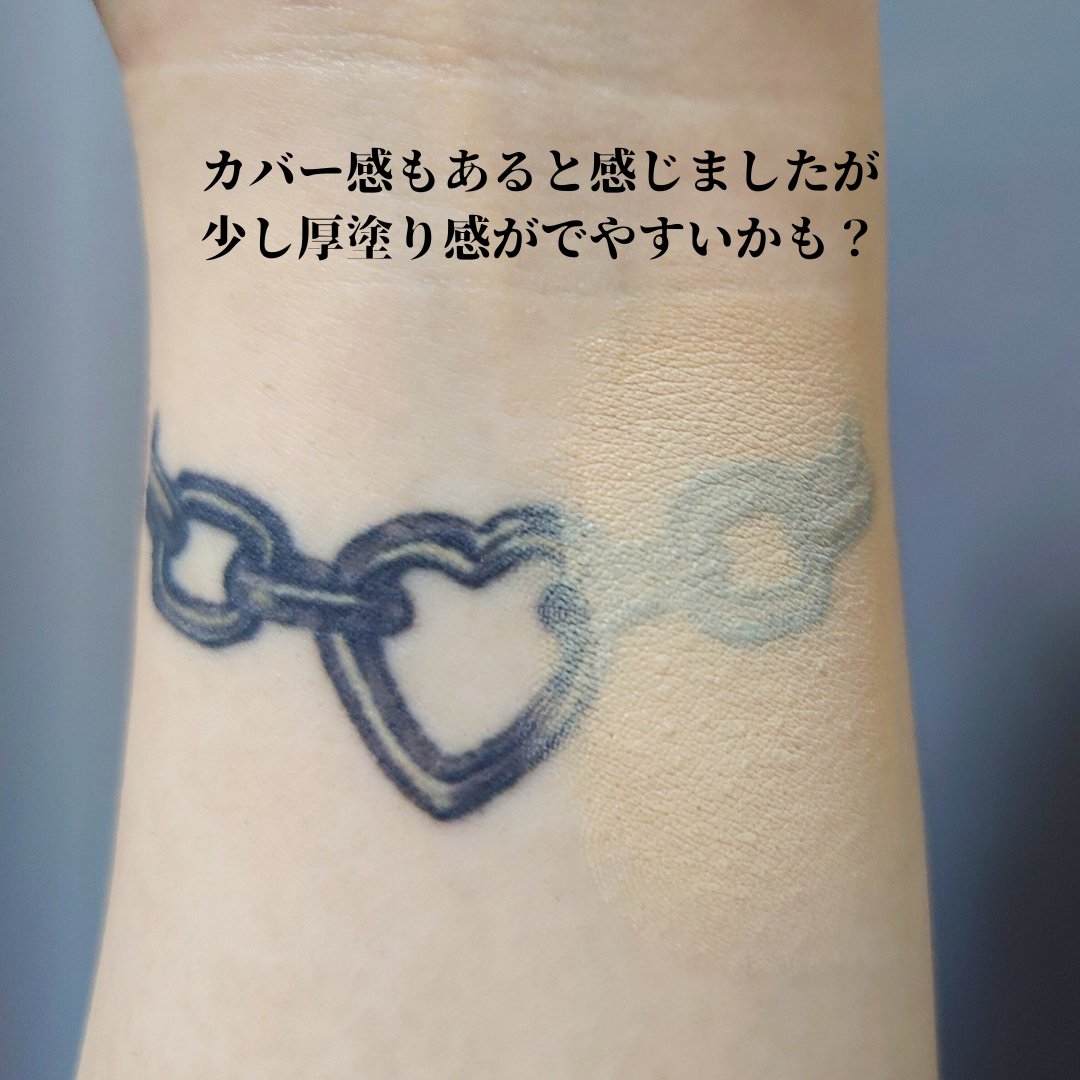 薄膜で、軽い使用感❣️ 塗布してる時はみずみずしいのに 馴染むとピタッと密着するような使用感🫶🏻 4種類の異なるパウダー配合で 薄く均一にカバーしてくれるそう◎ カバー感あるのに、重くないからお気に入り⭐ 汗に強いアクティビティプルーフ🫧 水をしっかり弾くから、今からの時期に良さそうです!! ハートの可愛いパフは使いやすい♡