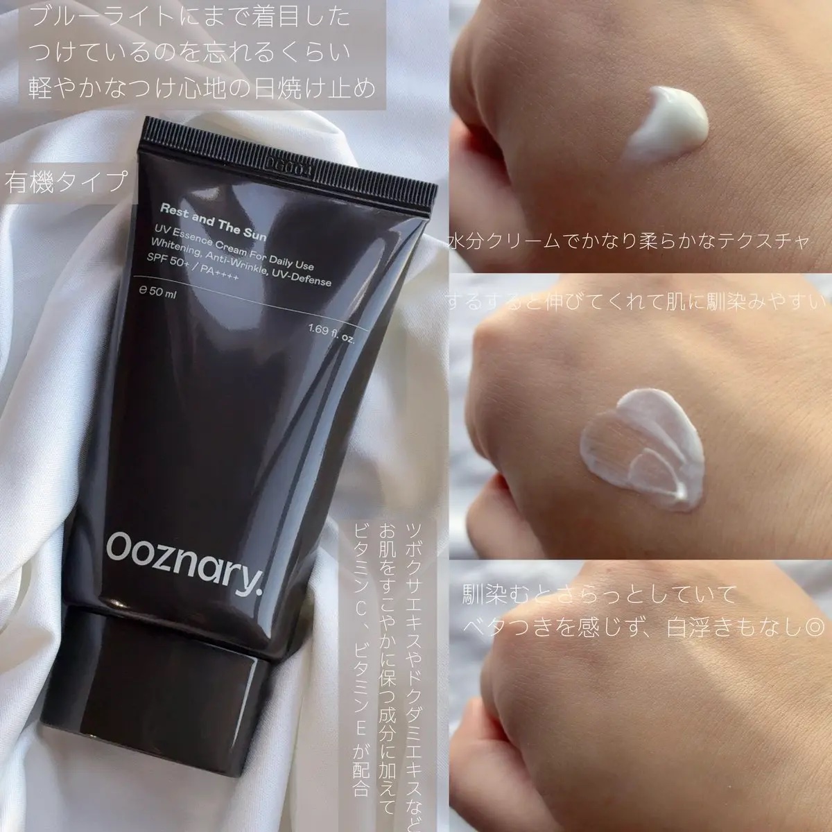 ☀️Ooznary(@ooznary.japan)#レストアンドザサンべたつきやテカリのない水分クリームのような日焼け止め💧皮脂ケアによる油水分のバランス調整や肌のキメを整え、ツヤのある肌を表現してくれる✨️白浮きせず、保湿感たっぷりの日...
