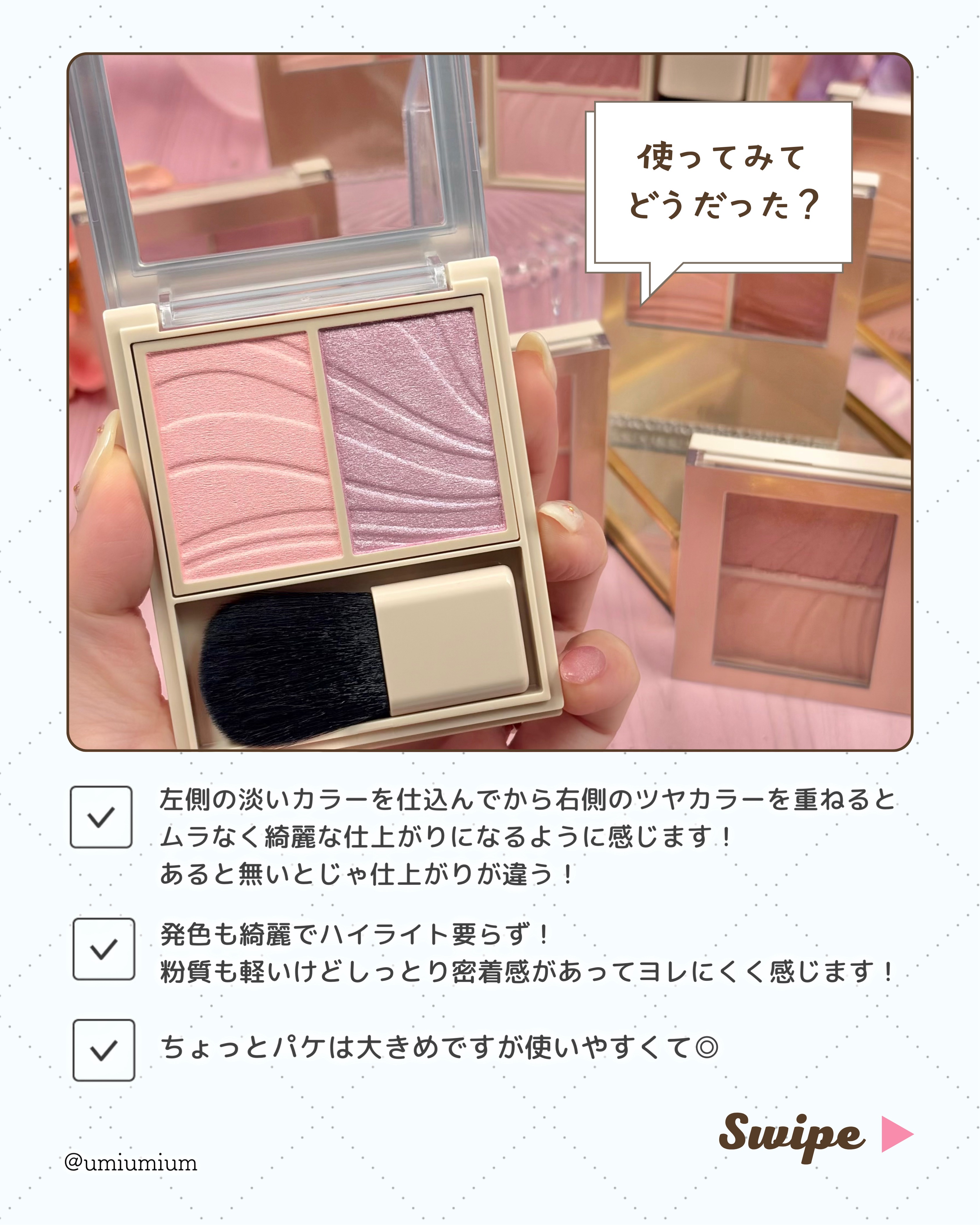 | チークランキング第3位 | ときめきチーク🥹見たまんまの綺麗な発色でツヤ感もあって良い♡ | 詳細を見る | |
