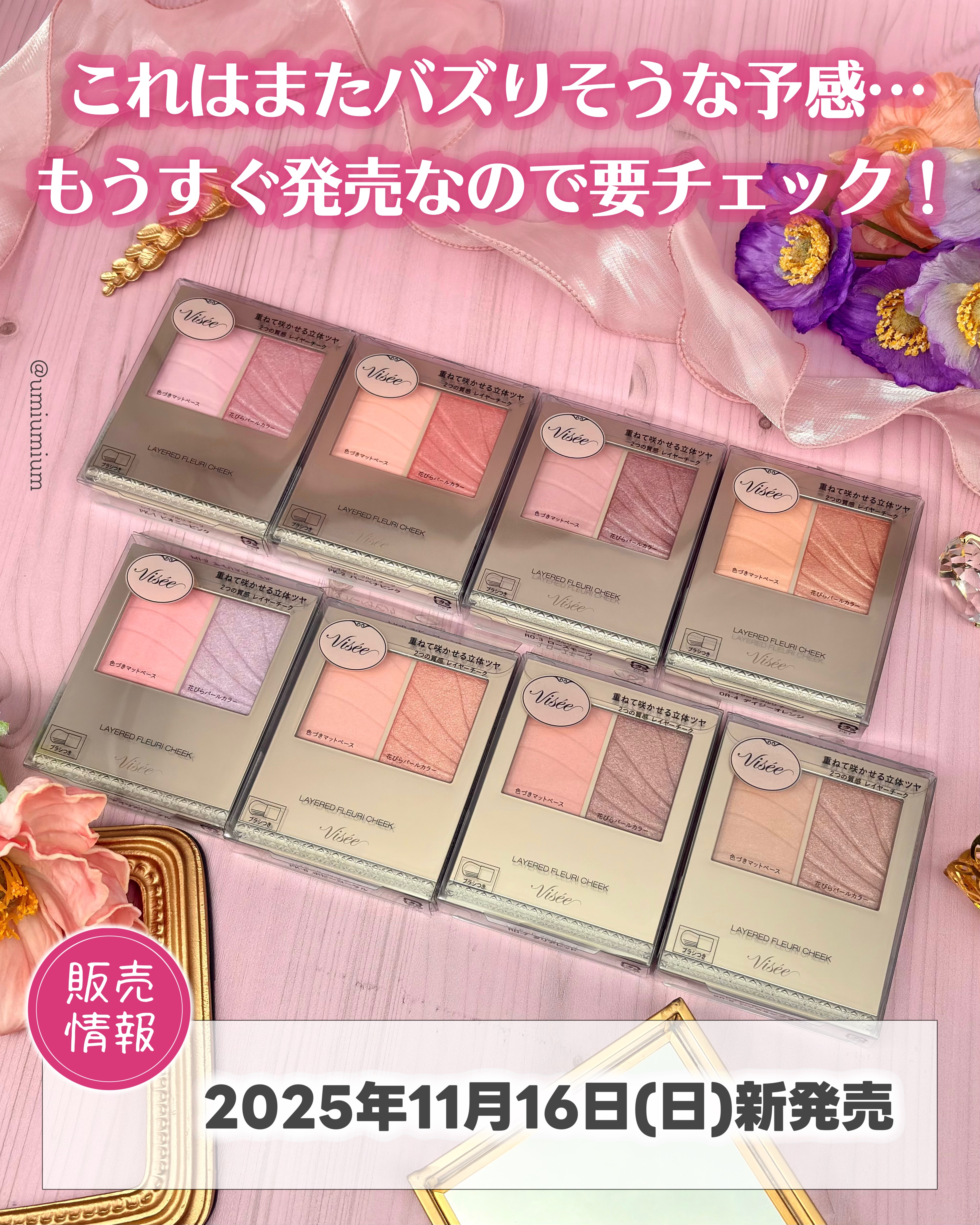..˚⊹⁺‧‧⁺⊹˚. Visée@visee_koseレイヤードフルリチークBR-8ジャスミンブラウン.˚⊹⁺‧‧⁺⊹˚. ヴィセから11月16日に発売されたチークが可愛すぎましたっ🥹💖花びらのような血色感と立体ツヤを生み出す2質感のチーク...