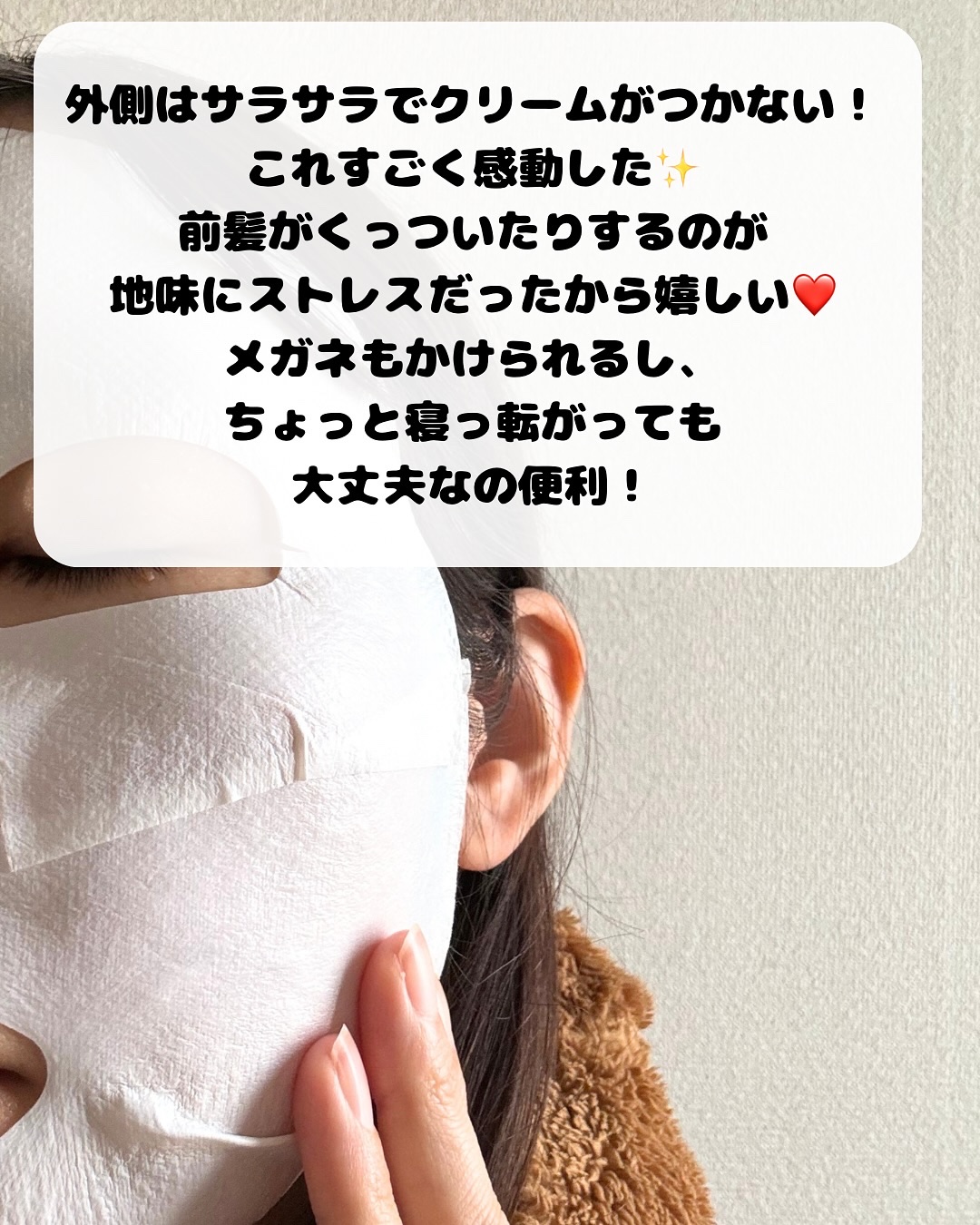 | クリームが満遍なくシートに付いていて、ぴったりと密着し全顔覆い尽くしてしっかりケアできる🤲🏻 | 詳細を見る | |||