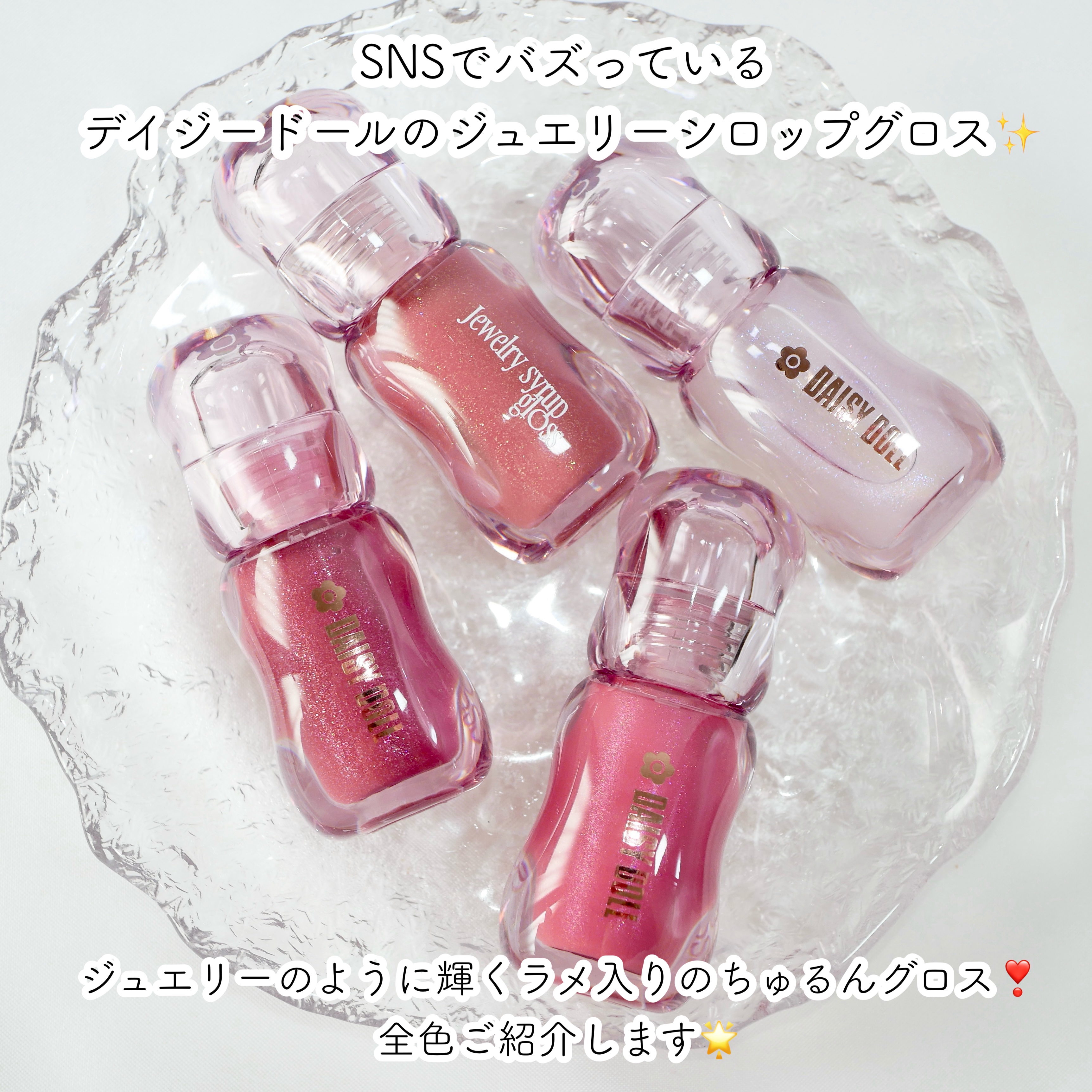 - デイジードールから、ジュエリーのようなきらめきと、シロップのようなツヤ感を与える、まるでパックのようなリップグロスが登場! ジュエリーのような輝きを放つたっぷりのラメと、シロップのようなとろけるツヤのベールが重なりあう、リップケア発想のグロスです。 「ラメ × ツヤ × ニュアンスカラー」のトレンド感あふれる絶妙な4色展開でぷるんとツヤめく理想の唇が長時間続きます。