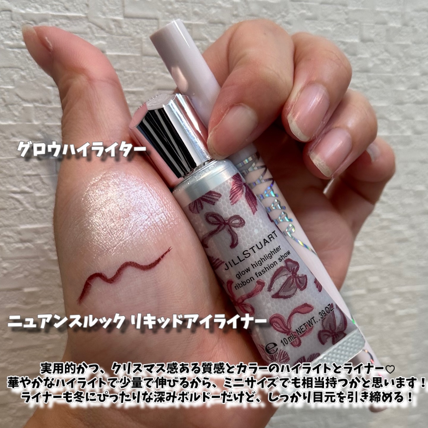 💄今日のメイクオールジルスチュアートリボン✔️アイシャドウ、アイライナー、ハイライト、リップ リボンファッションショー✔️チーク 102ジルスチュアート ホリデー2025🎀リボンファッションショーコレクション🎀リボンがテーマのコレクションです...