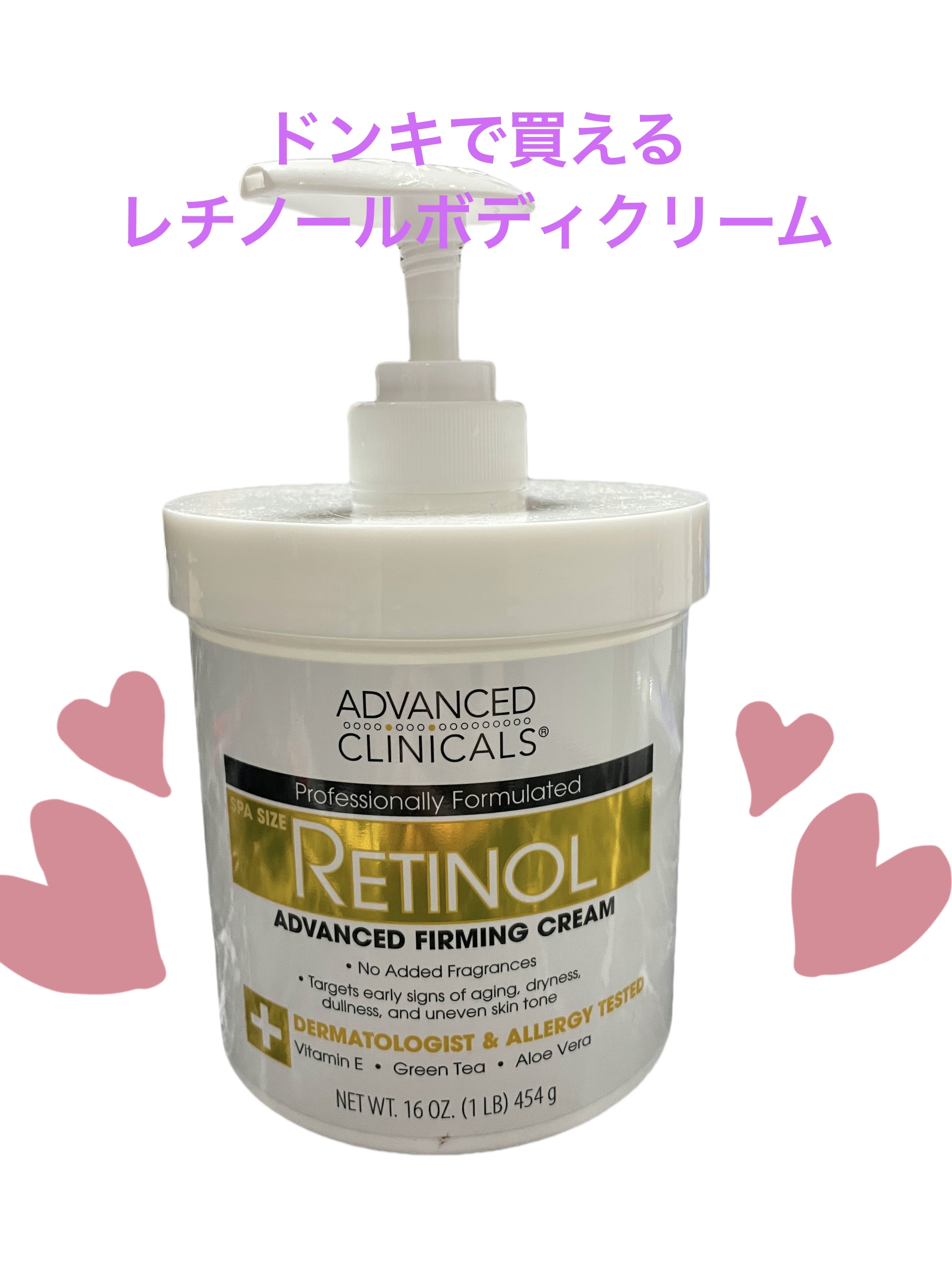 めちゃくちゃバズって今や人気定番✋ レチノール*ボディクリーム 454gと大容量!約6ヶ月分のサイズらしい✍️ レチノール配合で肌大丈夫かな?と心配な方もいるかもだけどマイルドな処方らしく毎日でも使用出来るそう◎
