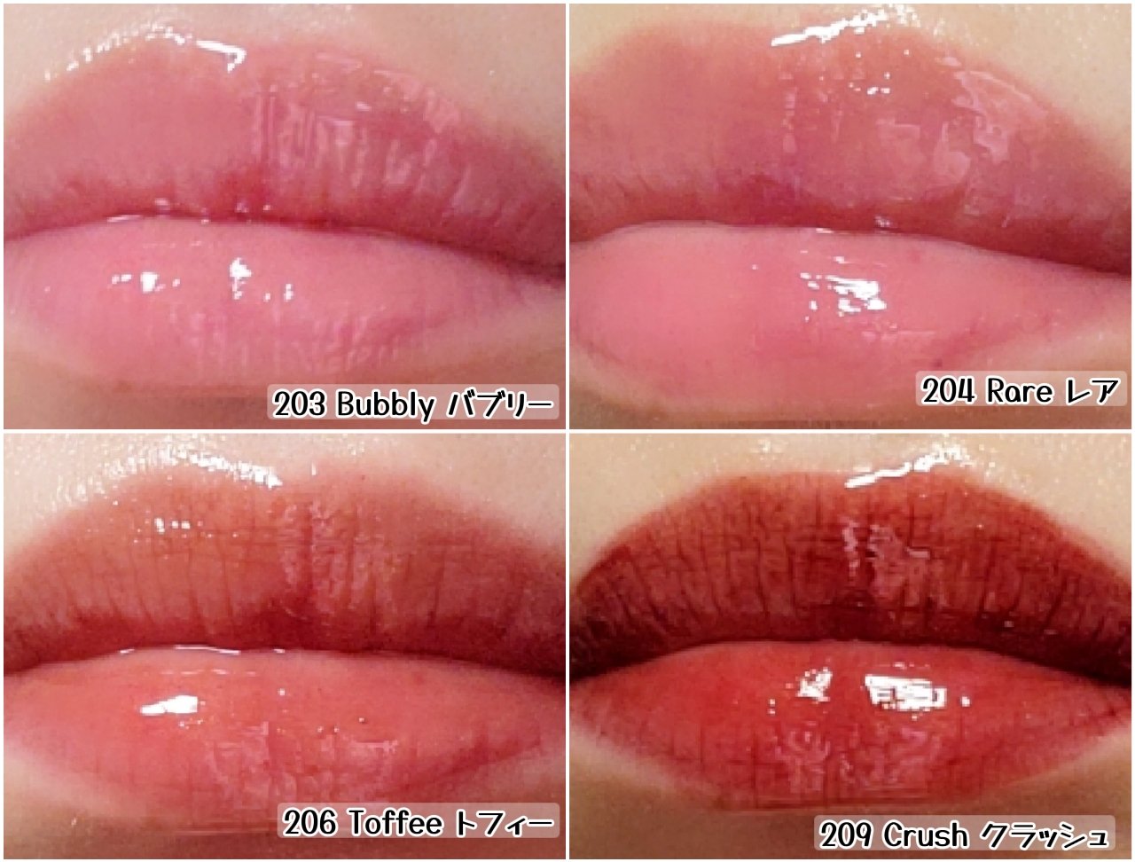 - <201 フェアリー> ダイマージリノール酸ジイソステアリル、ジフェニルシロキシフェニルトリメチコン、ビスジグリセリルポリアシルアジペート-2、水、ジフェニルジメチコン、水添ポリイソブテン、セチルPEG/PPG-10/1ジメチコン、ポリソルベート60、ペンチレングリコール、グリセリン、イソステアリン酸ポリグリセリル-4、フェノキシエタノール、1,2-ヘキサンジオール、セテアレス-20、酸化チタン (CI 77891)、(アクリル酸ヒドロキシエチル/アクリロイルジメチルタウリンNa)コポリマー、ステビオシド、スクワラン、香料、ジラウラミドグルタミドリシンNa、エチルヘキシルグリセリン、エチレンジアミンジコハク酸3Na、赤色227号 (CI 17200)、水酸化Al、黄色5号 (CI 15985)、ポリアクリル酸アンモニウム、イソステアリン酸ソルビタン、黄色4号 (CI 19140)、BG、赤色223号 (CI 45410)、青色1号 (CI 42090)、アラントイン、パンテノール、ツボクサエキス、ヒアルロン酸、加水分解ヒアルロン酸、ヒアルロン酸Na <203 バブリー> ダイマージリノール酸ジイソステアリル、ジフェニルシロキシフェニルトリメチコン、ビスジグリセリルポリアシルアジペート-2、水、ジフェニルジメチコン、水添ポリイソブテン、セチルPEG/PPG-10/1ジメチコン、ポリソルベート60、ペンチレングリコール、グリセリン、イソステアリン酸ポリグリセリル-4、フェノキシエタノール、1,2-ヘキサンジオール、セテアレス-20、(アクリル酸ヒドロキシエチル/アクリロイルジメチルタウリンNa)コポリマー、ステビオシド、酸化チタン (CI 77891)、スクワラン、香料、ジラウラミドグルタミドリシンNa、エチルヘキシルグリセリン、赤色227号 (CI 17200)、エチレンジアミンジコハク酸3Na、黄色5号 (CI 15985)、イソステアリン酸ソルビタン、水酸化Al、ポリアクリル酸アンモニウム、黄色4号 (CI 19140)、BG、青色1号 (CI 42090)、アラントイン、パンテノール、ツボクサエキス、ヒアルロン酸、加水分解ヒアルロン酸、ヒアルロン酸Na <204 レア> ダイマージリノール酸ジイソステアリル、ジフェニルシロキシフェニルトリメチコン、ビスジグリセリルポリアシルアジペート-2、水、ジフェニルジメチコン、水添ポリイソブテン、セチルPEG/PPG-10/1ジメチコン、ポリソルベート60、ペンチレングリコール、グリセリン、イソステアリン酸ポリグリセリル-4、フェノキシエタノール、1,2-ヘキサンジオール、セテアレス-20、(アクリル酸ヒドロキシエチル/アクリロイルジメチルタウリンNa)コポリマー、酸化チタン (CI 77891)、ステビオシド、スクワラン、香料、ジラウラミドグルタミドリシンNa、エチルヘキシルグリセリン、赤色227号 (CI 17200)、黄色5号 (CI 15985)、エチレンジアミンジコハク酸3Na、イソステアリン酸ソルビタン、水酸化Al、ポリアクリル酸アンモニウム、黄色4号 (CI 19140)、青色1号 (CI 42090)、BG、アラントイン、パンテノール、ツボクサエキス、ヒアルロン酸、加水分解ヒアルロン酸、ヒアルロン酸Na <205 ハニーデュー> ダイマージリノール酸ジイソステアリル、ジフェニルシロキシフェニルトリメチコン、ビスジグリセリルポリアシルアジペート-2、水、ジフェニルジメチコン、水添ポリイソブテン、セチルPEG/PPG-10/1ジメチコン、ポリソルベート60、ペンチレングリコール、グリセリン、イソステアリン酸ポリグリセリル-4、フェノキシエタノール、1,2-ヘキサンジオール、セテアレス-20、(アクリル酸ヒドロキシエチル/アクリロイルジメチルタウリンNa)コポリマー、酸化チタン (CI 77891)、ステビオシド、スクワラン、香料、ジラウラミドグルタミドリシンNa、エチルヘキシルグリセリン、赤色227号 (CI 17200)、黄色5号 (CI 15985)、エチレンジアミンジコハク酸3Na、イソステアリン酸ソルビタン、水酸化Al、ポリアクリル酸アンモニウム、黄色4号 (CI 19140)、青色1号 (CI 42090)、BG、アラントイン、パンテノール、ツボクサエキス、ヒアルロン酸、加水分解ヒアルロン酸、ヒアルロン酸Na <206 トフィー> ダイマージリノール酸ジイソステアリル、ジフェニルシロキシフェニルトリメチコン、ビスジグリセリルポリアシルアジペート-2、水、ジフェニルジメチコン、水添ポリイソブテン、セチルPEG/PPG-10/1ジメチコン、ポリソルベート60、ペンチレングリコール、グリセリン、イソステアリン酸ポリグリセリル-4、フェノキシエタノール、1,2-ヘキサンジオール、セテアレス-20、(アクリル酸ヒドロキシエチル/アクリロイルジメチルタウリンNa)コポリマー、ステビオシド、スクワラン、香料、ジラウラミドグルタミドリシンNa、酸化チタン (CI 77891)、エチルヘキシルグリセリン、黄色5号 (CI 15985)、エチレンジアミンジコハク酸3Na、黄色4号 (CI 19140)、赤色227号 (CI 17200)、イソステアリン酸ソルビタン、赤色223号 (CI 45410)、青色1号 (CI 42090)、水酸化Al、ポリアクリル酸アンモニウム、BG、アラントイン、パンテノール、ツボクサエキス、ヒアルロン酸、加水分解ヒアルロン酸、ヒアルロン酸Na <207 フレイム> ダイマージリノール酸ジイソステアリル、ジフェニルシロ
