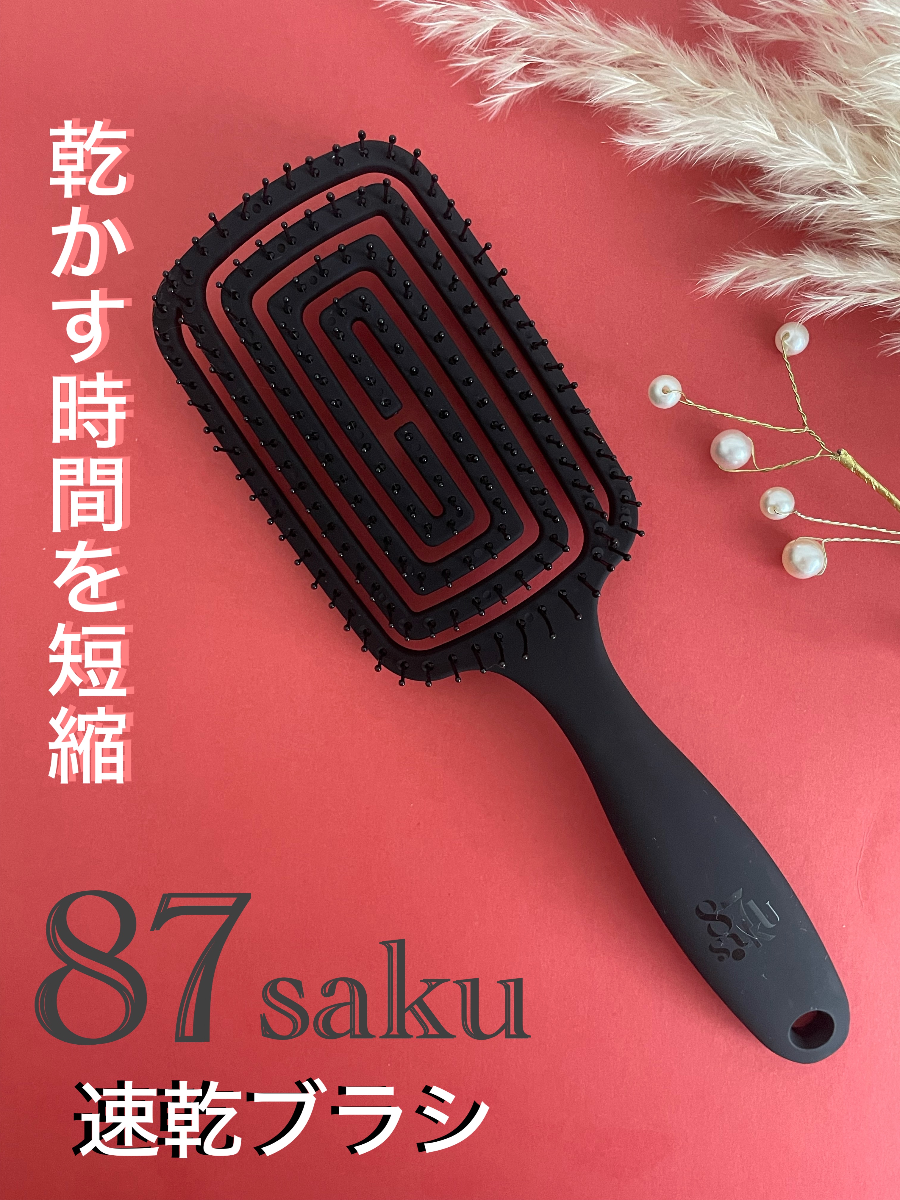 87sakuハナサク速乾ブラシ/時短ブローでふんわりまとまるサラサラ髪へ\特殊設計により、ドライヤーの風を効率よく通し、乾燥時間を大幅カット、このブラシ一本で、ドライヤー時間を短縮しながら、サラツヤの美髪が手に入る、毎日のヘアケアを、より簡単...