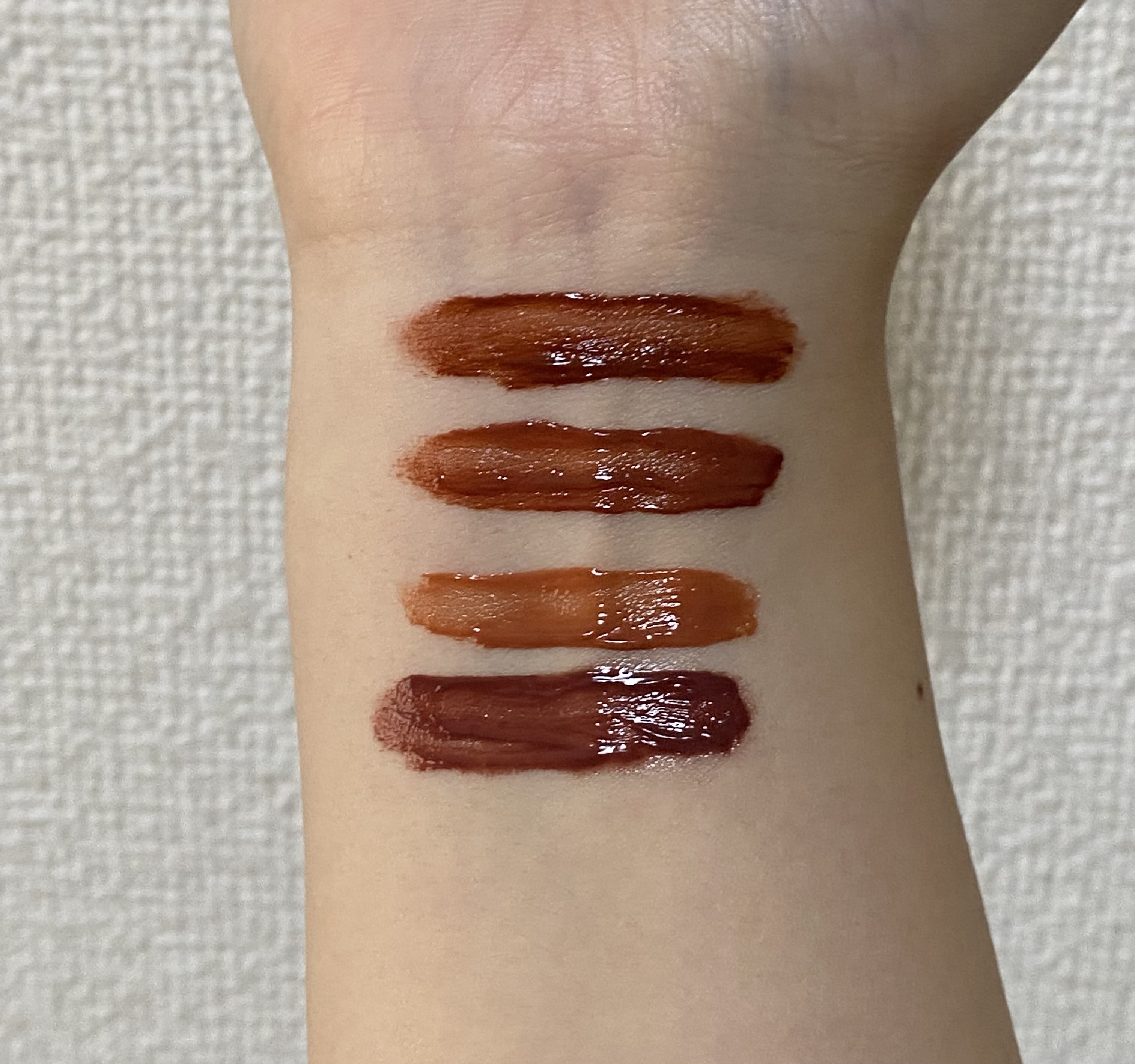 発色・色持ちも良くて グロスですがベタつき感もなく 塗り心地も良かったです!🥰✨️ わたしは少し前にPLAZAで 2000円くらいで購入しました! 今だとQoo10のメガ割でもう少しお安く 購入できると思います!🥹 どちらも使いやすく馴染みのいい色でした!