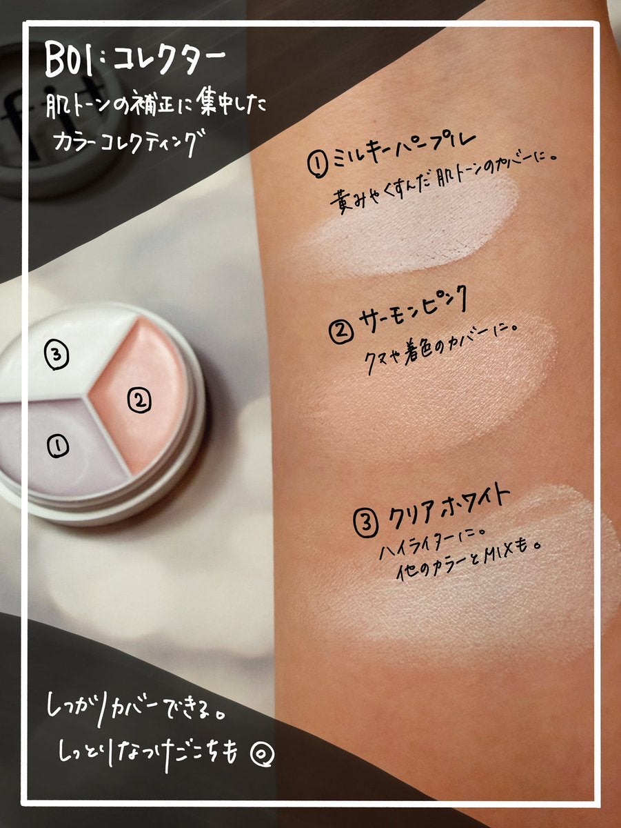 確かにくすみをふわっとカバーしてくれて驚き。 とてもナチュラルでつけてる感覚がしない! 肌なやみに合わせて色を組み合わせて使うのもおもしろい。 ナチュラルな素肌感のある仕上がりとしてぼかすアイテム。 化粧直しにとってもピッタリ!!! このコンパクトなサイズ感も私好み♡