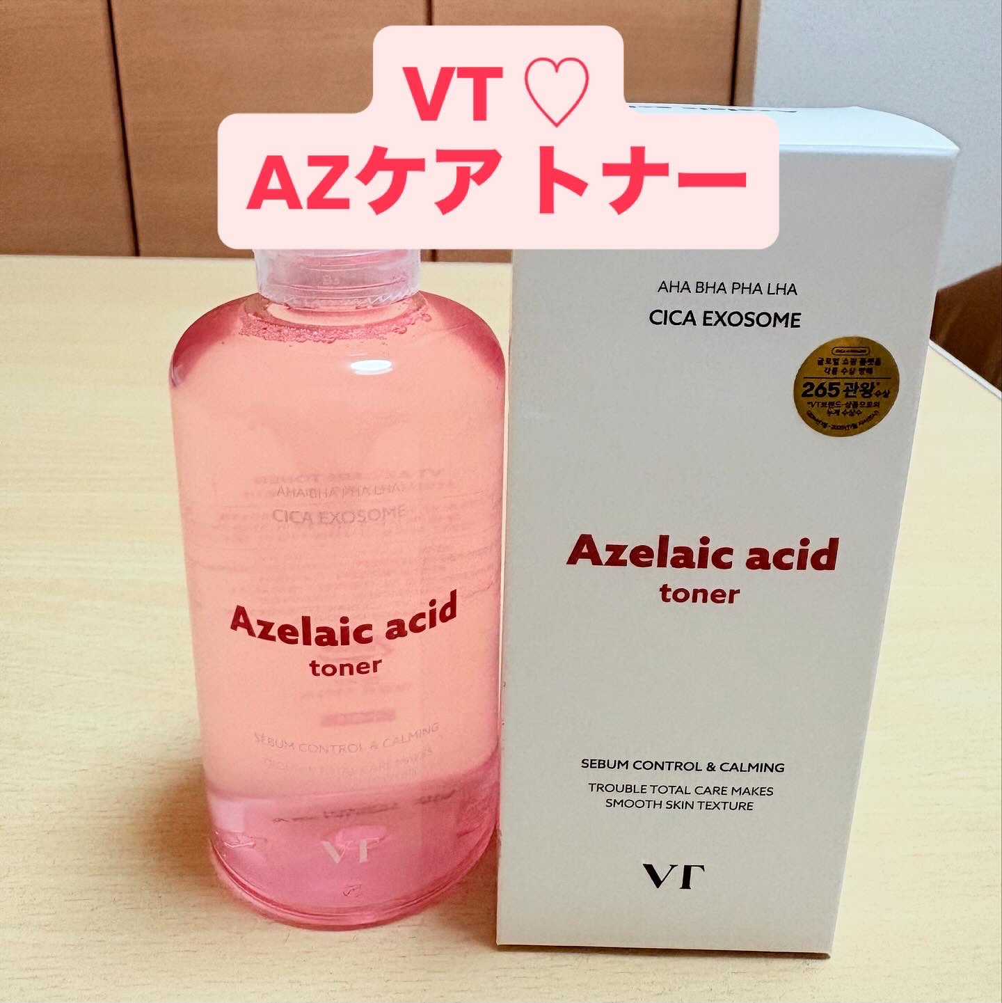 VT様よりご提供いただきました。❤︎AZケアトナーVTの人気ラインアゼライン酸シリーズからのトナーが登場❤️高純度アゼライン酸とCICAエクソソームが配合で乾燥で目立ってしまう毛穴をしっかりケアしてくれる🫧かなりサラッとしたテクスチャーでバシ...