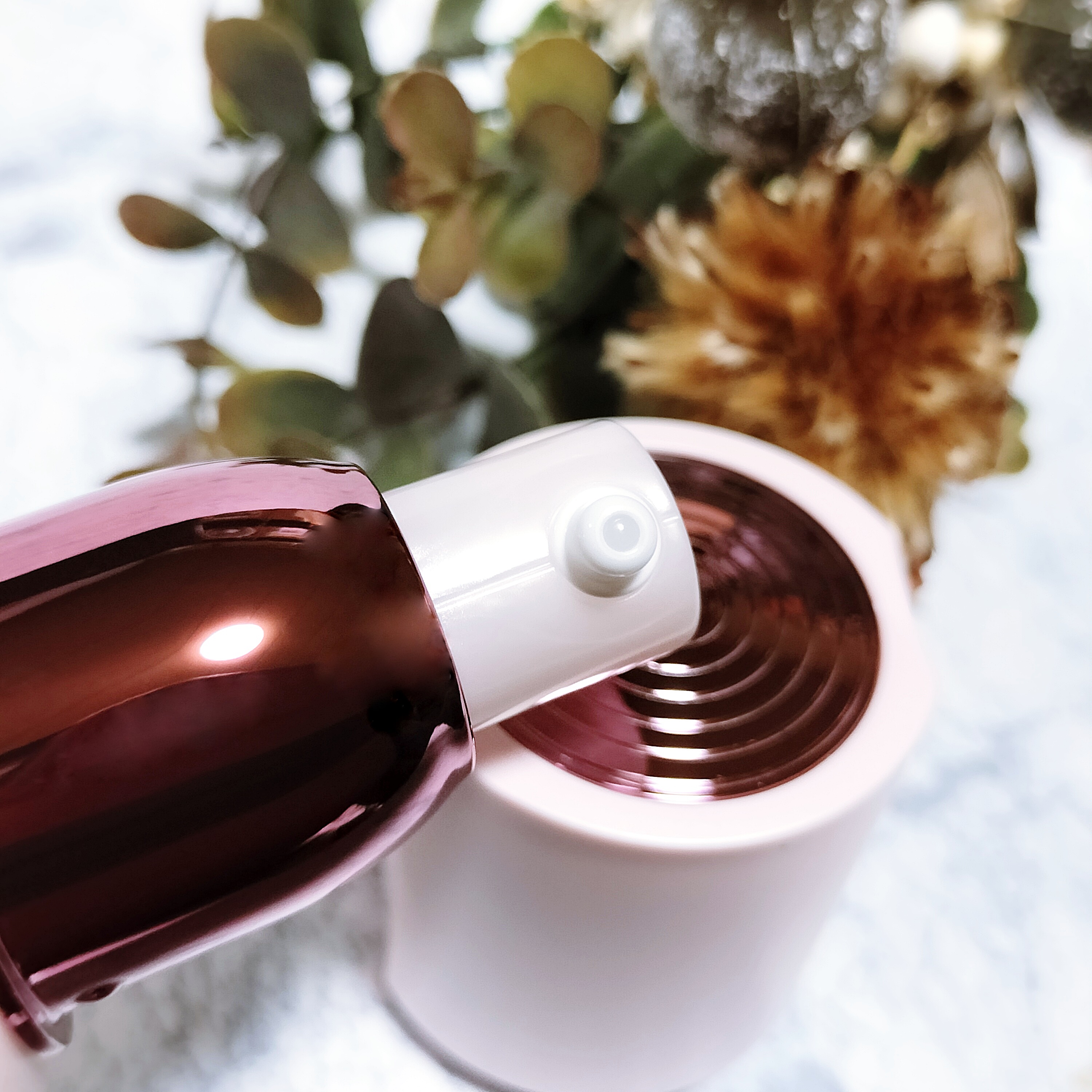 Nude ファースト C ブーストは洗顔後すぐの肌にCチャージ うるおいの準備を整えるブースターセラムです。 こちらのシリーズはアイテムにより異なるカラーの容器を採用してて こちらはビタミンカラーのイエロー、 ゆらぎ肌も喜ぶ高保湿ローションはトマトオレンジ、 夜の肌のためのクリームは穏やかなグリーン、 朝のスキンケアの仕上げクリームは包み込むようなピンク~ お手入れが楽しくなるようなカラフルなお色です。 白濁したとろみのあるテクスチャーで ストレスの多い今、ラベンダー油、ベルガモット、ローズマリー等の ブレンド精油の香りが心地よく広がって癒されます。 伸びも馴染みも良いです。 手に吸い付くようなもちもち感で この後のいつものスキンケアがすんなり入ってくれるような気がします。 マスク生活が長引いてお肌が揺らぎがちなので 土台を整え、うるおいの準備を整えてくれるのは嬉しいですね。