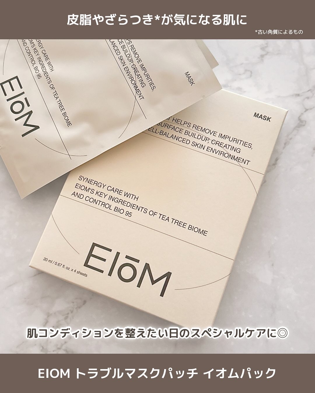 EIOMトラブルマスクパッチイオムパック部分ケアしかできないニキビパッチの発想を、そのまま顔全体に皮脂やざらつき*が気になる肌をケアする新感覚マスクパックイオム独自の95億の乳酸菌「CONTROLBIO95™」と「TEATREEBIOME...