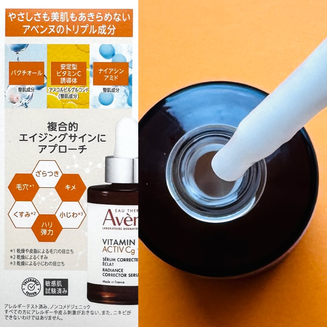 - 乾燥によるくすみや小じわ*1が気になる敏感肌に。”攻め”の一滴で輝くようなハリつや肌へ導くビタミンCg*2配合美容液 〇敏感肌の乾燥によるエイジング悩みに着目。ビタミンCg*2配合で、肌のきめを整え、毛穴・ざらつきをケアして輝きのあるなめらかな素肌に。 〇ナイアシンアミド*3がうるおいバリアを守ります。 〇ビーガンレチノール(バクチオール*3)が乾燥による小じわを目立たなくします*1。 〇アベンヌ温泉水*4配合で、肌にうるおいを与え整えます。 〇首・デコルテにも使用できます。 〇エレガントなフローラルブーケの香り *1効能評価試験済み *2アスコルビルグルコシド(整肌成分) *3整肌成分 *4温泉水(整肌成分) 2024年10月2日:ツルハ限定にて発売開始 2025年9月21日:全国発売開始