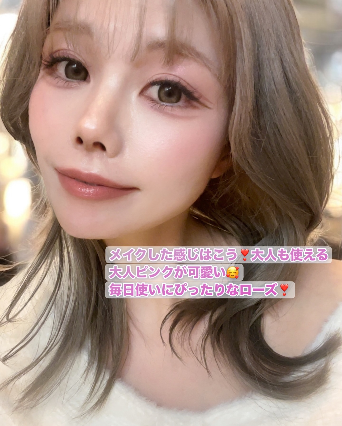 全体的にピンクのメイク(ピーチやコーラルのカラー)で仕上げて、大人っぽさの中に可愛らしさがあるというようなメイクらしい笑 使用したのは画像に載せたものです︎💕︎ UNMIX アイリッドニュアンス ダブル01 ピーチコーラル🍑 これ目もチークにも使える万能カラー✨ マスカラはフーミーのテラコッタピンク✨ ピンクでも盛れる可愛いカラー♥️✨ アイライナーはキャンメイクのクリィミータッチライナー09でした💦 部分的にさらにラメを足したいなあと思ってシピシピを黒目から地雷盛りラインの下までにON🍑 リップは下にアルミュージュを土台にして、グラデーションに泥リップ ツヤ足しに、イブサンローランを( ¯ᵕ¯ )♡