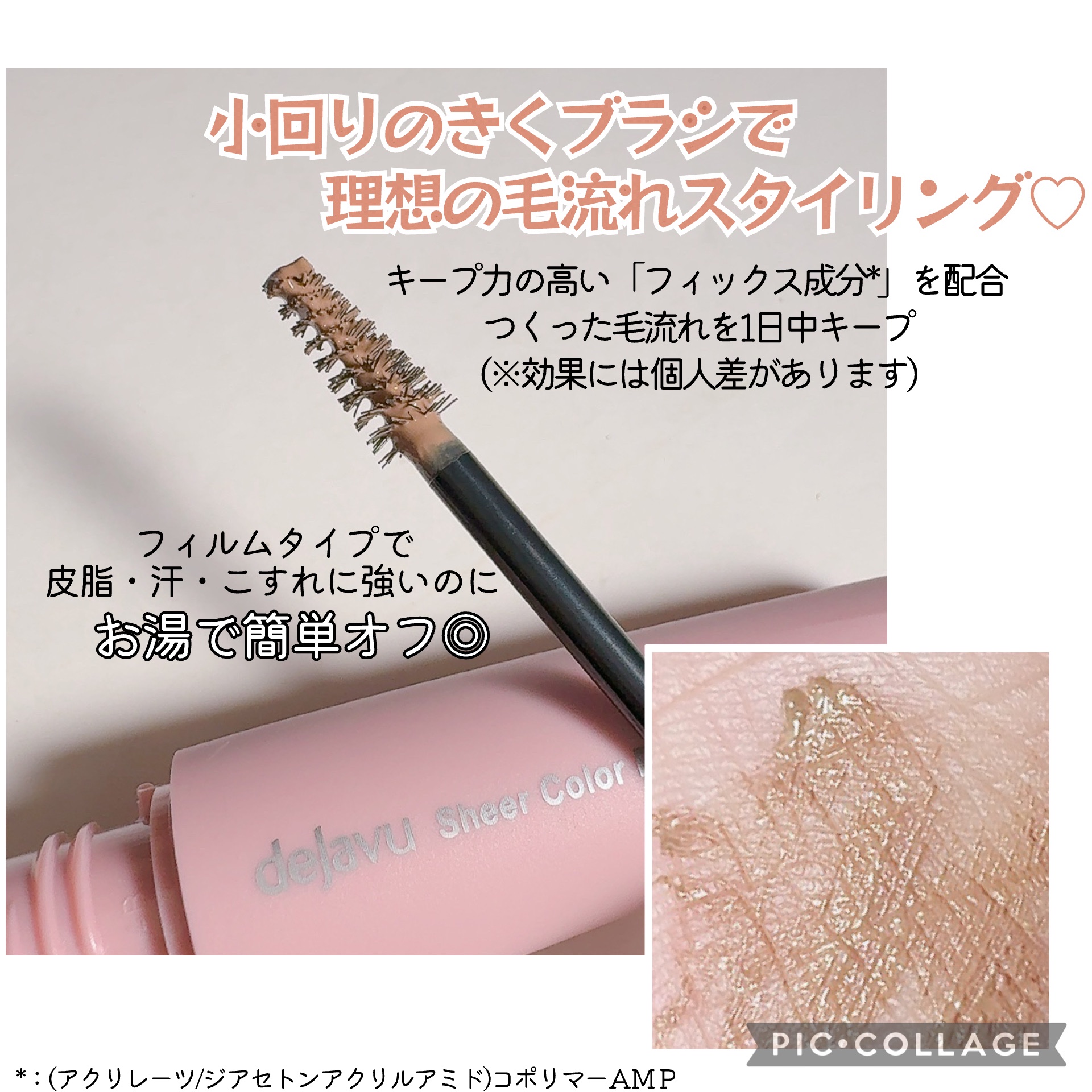- \\デジャヴュからの新提案!自眉を活かしたシアーな色づきの眉マスカラ// 「シアーカラーブロウ」は、水彩絵の具のように“シアーな色づき”と、“美しい毛流れ”、 さらにパサつきのない“しっとりした質感”を1本で叶える眉マスカラ。 まるで元の眉がそのまま色づくような、“究極のナチュラル眉”に仕上げます*。 フィルムタイプで、皮脂・汗・こすれに強いのに、お湯だけで簡単に落とせます。 ※2025年9月19日より全国のPLAZA、MINiPLAで先行発売予定(一部お取扱いの無い店舗があります) *ブランド内において
