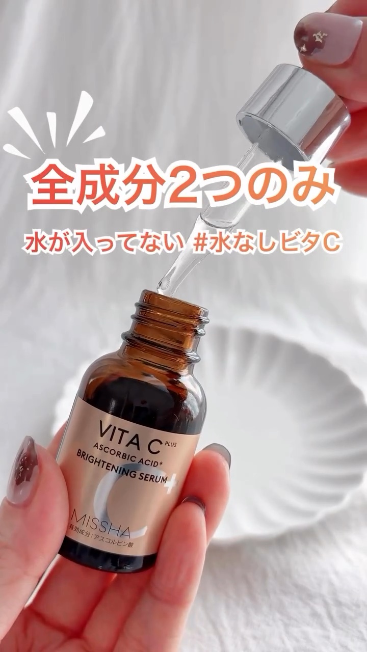 ☺︎水を使ってない美容液!!【純粋ビタミンCとプロピレングリコール】わずか2成分だけで構成されているんだって😳‼︎医薬部外品認証の“薬用セラム”だし、水で薄められていないから機能性の高さに期待❤️◼️MISSHAビタCブライトニングセラ...