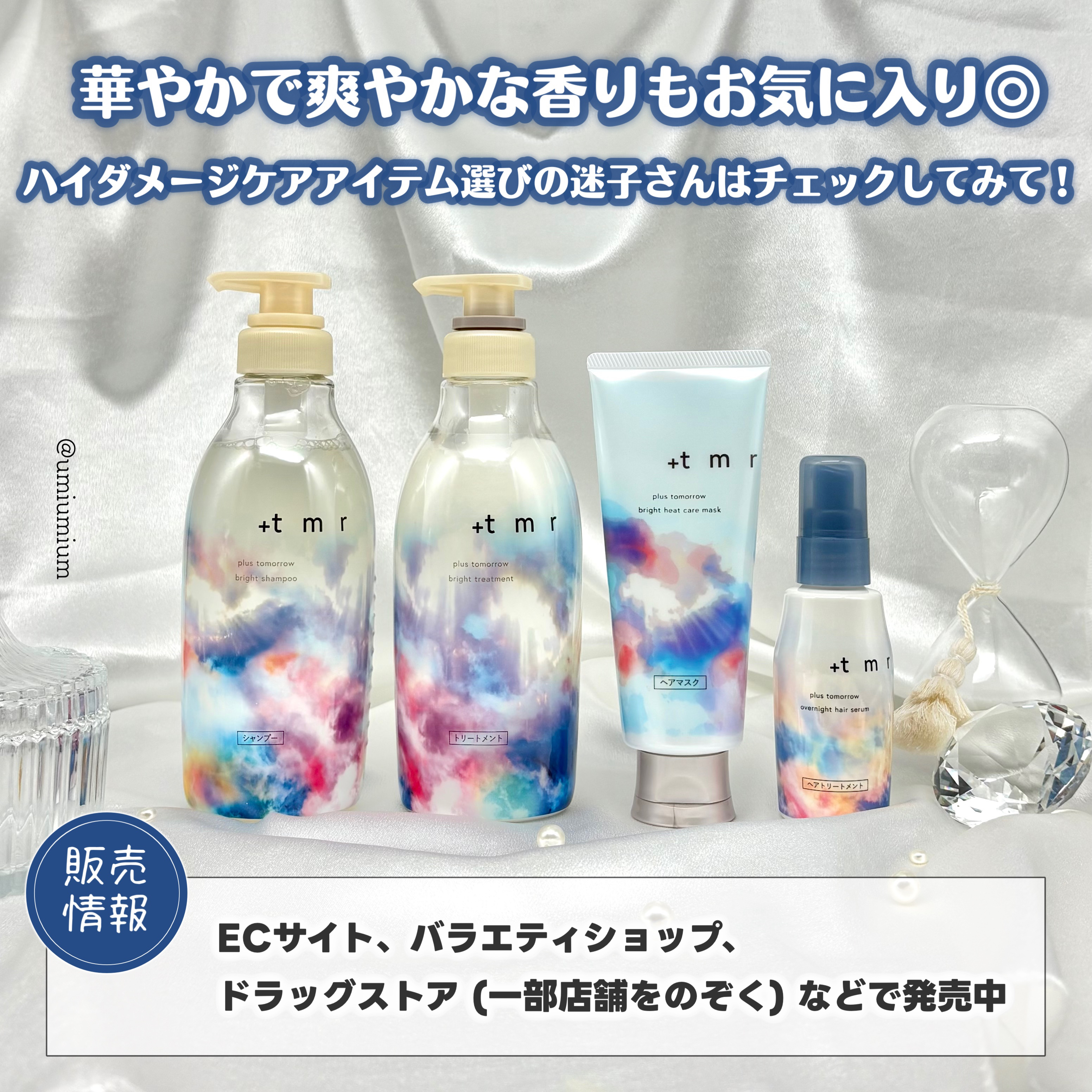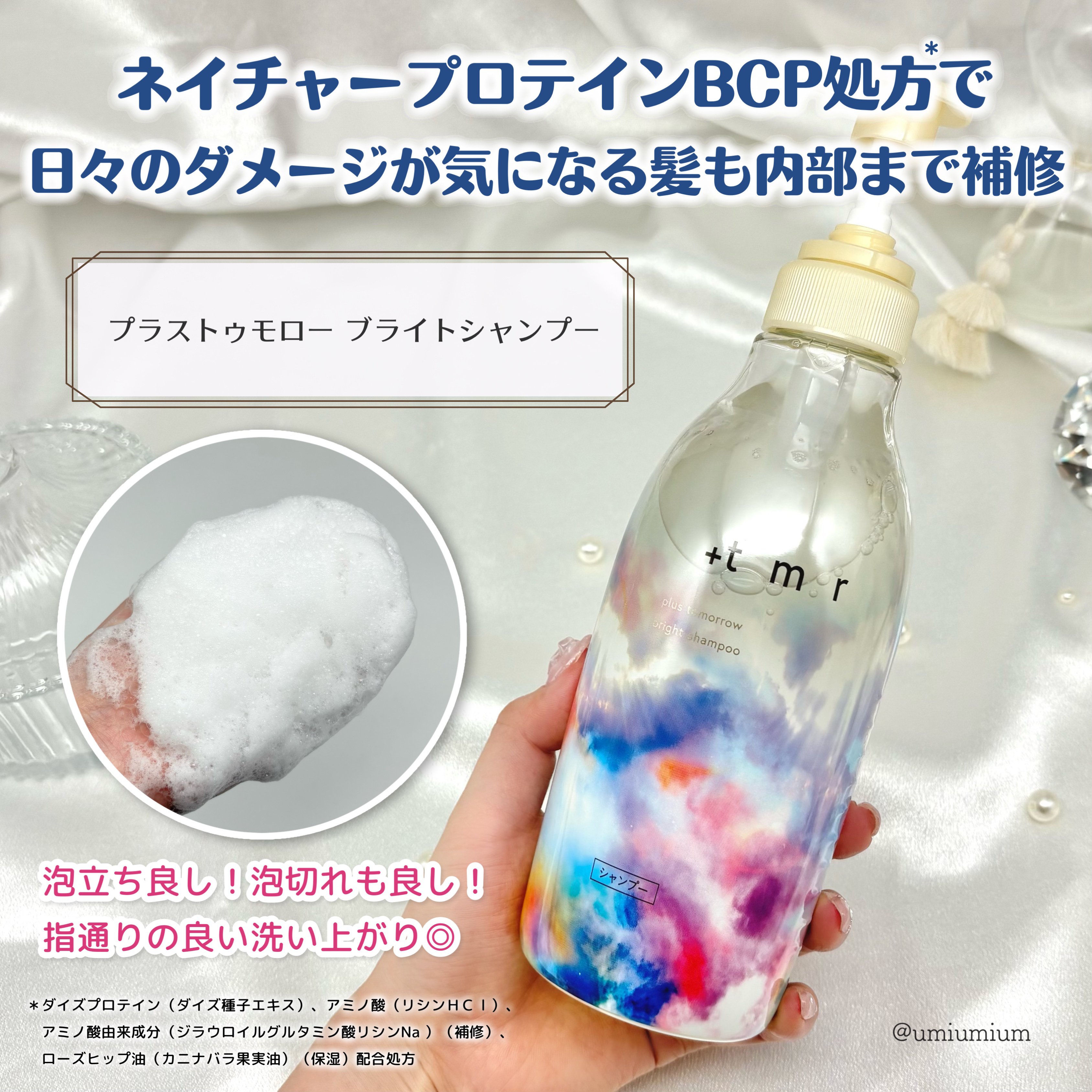 【ハイダメージ毛におすすめ!+tmrからブライトシリーズ新登場】髪の80%はタンパク質って知ってた?そんなタンパク質に着目した+tmrからブリーチやカラーを繰り返したハイダメージ毛に着目したブライトシリーズ新登場!■+tmrプラストゥモローブ...