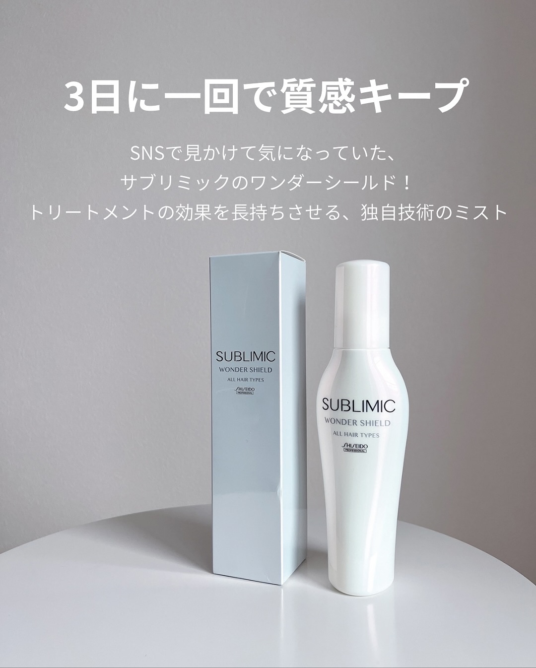 - <洗い流さないトリートメント> 3日に1 回、自宅でご使用いただくスペシャルケア。 見えないシールドで髪を包み込み、サロンで仕上げた、なめらかな髪を長く持続させます。