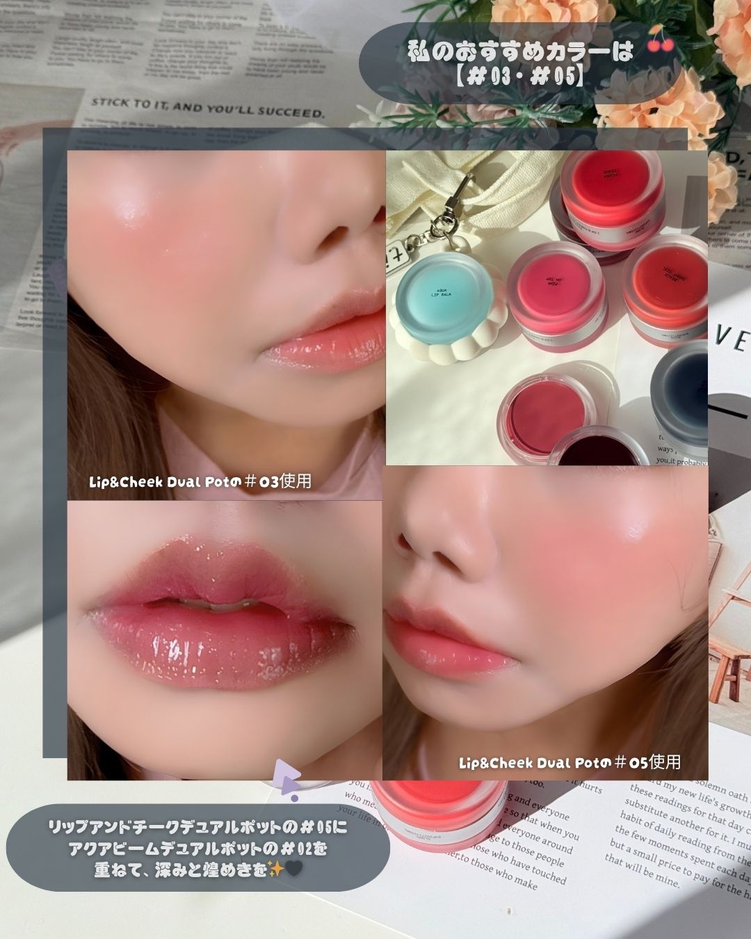 水彩画のようなソフトなカラーで発色してくれるので自然な可愛い血色感を作ることが出来チークになってます🥰🌸◦° 見た目のコロンっとしたパケも可愛いくって集めたくなってしまいます😍🩷 ピンクベージュカラーにブラウンを少し加えたようなカラーなのですが、ブラウン感が控えめで可愛い血色感を出してくれて とても可愛かったです🥰💕