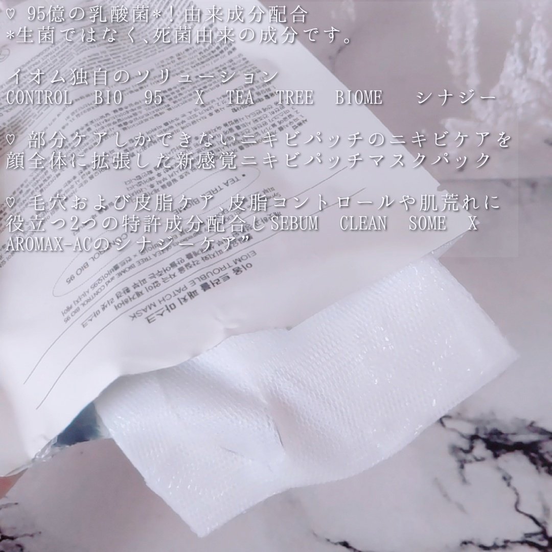 🤍EIOMトラブルマスクパッチイオムパック部分ケアしかできないニキビパッチのニキビケアを顔全体に拡張した新感覚ニキビパッチマスクパック95億の乳酸菌!イオム独自のソリューションCONTROLBIO95™XTEATREEBIOME™シナジ...