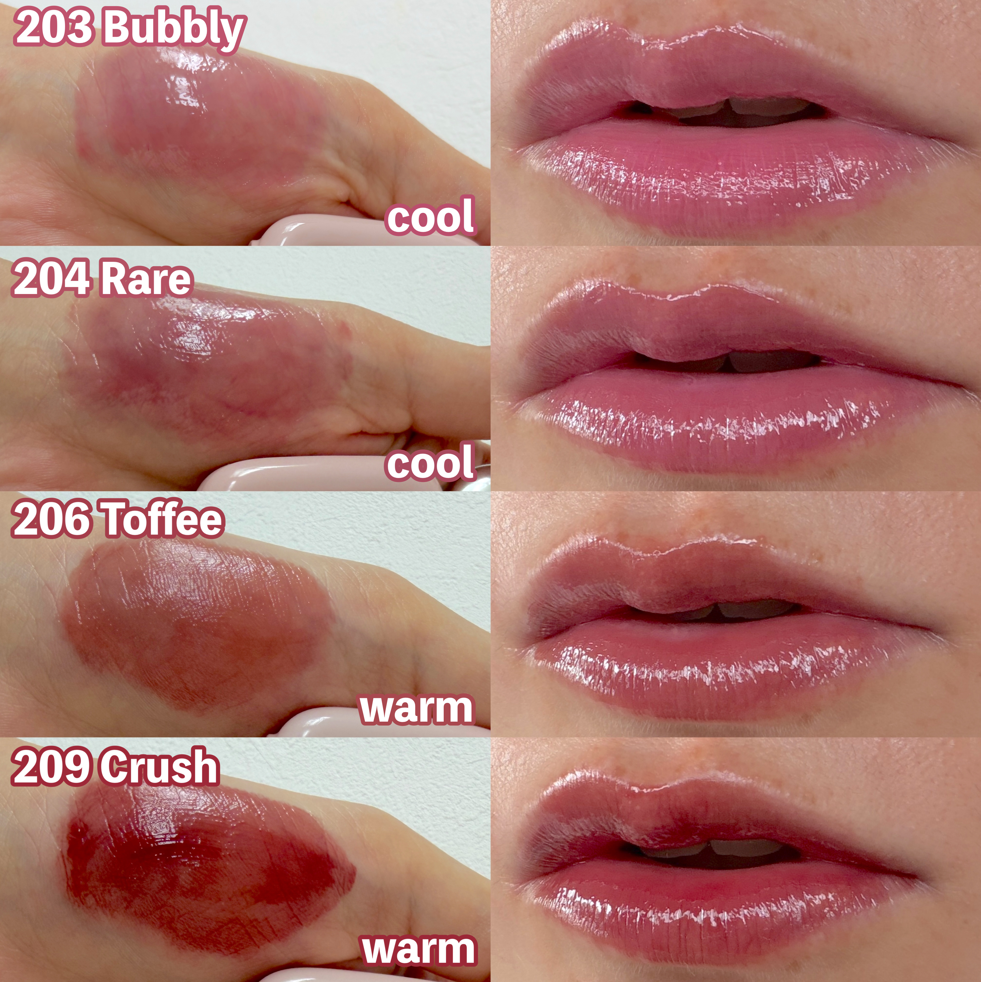 - <201 フェアリー> ダイマージリノール酸ジイソステアリル、ジフェニルシロキシフェニルトリメチコン、ビスジグリセリルポリアシルアジペート-2、水、ジフェニルジメチコン、水添ポリイソブテン、セチルPEG/PPG-10/1ジメチコン、ポリソルベート60、ペンチレングリコール、グリセリン、イソステアリン酸ポリグリセリル-4、フェノキシエタノール、1,2-ヘキサンジオール、セテアレス-20、酸化チタン (CI 77891)、(アクリル酸ヒドロキシエチル/アクリロイルジメチルタウリンNa)コポリマー、ステビオシド、スクワラン、香料、ジラウラミドグルタミドリシンNa、エチルヘキシルグリセリン、エチレンジアミンジコハク酸3Na、赤色227号 (CI 17200)、水酸化Al、黄色5号 (CI 15985)、ポリアクリル酸アンモニウム、イソステアリン酸ソルビタン、黄色4号 (CI 19140)、BG、赤色223号 (CI 45410)、青色1号 (CI 42090)、アラントイン、パンテノール、ツボクサエキス、ヒアルロン酸、加水分解ヒアルロン酸、ヒアルロン酸Na <203 バブリー> ダイマージリノール酸ジイソステアリル、ジフェニルシロキシフェニルトリメチコン、ビスジグリセリルポリアシルアジペート-2、水、ジフェニルジメチコン、水添ポリイソブテン、セチルPEG/PPG-10/1ジメチコン、ポリソルベート60、ペンチレングリコール、グリセリン、イソステアリン酸ポリグリセリル-4、フェノキシエタノール、1,2-ヘキサンジオール、セテアレス-20、(アクリル酸ヒドロキシエチル/アクリロイルジメチルタウリンNa)コポリマー、ステビオシド、酸化チタン (CI 77891)、スクワラン、香料、ジラウラミドグルタミドリシンNa、エチルヘキシルグリセリン、赤色227号 (CI 17200)、エチレンジアミンジコハク酸3Na、黄色5号 (CI 15985)、イソステアリン酸ソルビタン、水酸化Al、ポリアクリル酸アンモニウム、黄色4号 (CI 19140)、BG、青色1号 (CI 42090)、アラントイン、パンテノール、ツボクサエキス、ヒアルロン酸、加水分解ヒアルロン酸、ヒアルロン酸Na <204 レア> ダイマージリノール酸ジイソステアリル、ジフェニルシロキシフェニルトリメチコン、ビスジグリセリルポリアシルアジペート-2、水、ジフェニルジメチコン、水添ポリイソブテン、セチルPEG/PPG-10/1ジメチコン、ポリソルベート60、ペンチレングリコール、グリセリン、イソステアリン酸ポリグリセリル-4、フェノキシエタノール、1,2-ヘキサンジオール、セテアレス-20、(アクリル酸ヒドロキシエチル/アクリロイルジメチルタウリンNa)コポリマー、酸化チタン (CI 77891)、ステビオシド、スクワラン、香料、ジラウラミドグルタミドリシンNa、エチルヘキシルグリセリン、赤色227号 (CI 17200)、黄色5号 (CI 15985)、エチレンジアミンジコハク酸3Na、イソステアリン酸ソルビタン、水酸化Al、ポリアクリル酸アンモニウム、黄色4号 (CI 19140)、青色1号 (CI 42090)、BG、アラントイン、パンテノール、ツボクサエキス、ヒアルロン酸、加水分解ヒアルロン酸、ヒアルロン酸Na <205 ハニーデュー> ダイマージリノール酸ジイソステアリル、ジフェニルシロキシフェニルトリメチコン、ビスジグリセリルポリアシルアジペート-2、水、ジフェニルジメチコン、水添ポリイソブテン、セチルPEG/PPG-10/1ジメチコン、ポリソルベート60、ペンチレングリコール、グリセリン、イソステアリン酸ポリグリセリル-4、フェノキシエタノール、1,2-ヘキサンジオール、セテアレス-20、(アクリル酸ヒドロキシエチル/アクリロイルジメチルタウリンNa)コポリマー、酸化チタン (CI 77891)、ステビオシド、スクワラン、香料、ジラウラミドグルタミドリシンNa、エチルヘキシルグリセリン、赤色227号 (CI 17200)、黄色5号 (CI 15985)、エチレンジアミンジコハク酸3Na、イソステアリン酸ソルビタン、水酸化Al、ポリアクリル酸アンモニウム、黄色4号 (CI 19140)、青色1号 (CI 42090)、BG、アラントイン、パンテノール、ツボクサエキス、ヒアルロン酸、加水分解ヒアルロン酸、ヒアルロン酸Na <206 トフィー> ダイマージリノール酸ジイソステアリル、ジフェニルシロキシフェニルトリメチコン、ビスジグリセリルポリアシルアジペート-2、水、ジフェニルジメチコン、水添ポリイソブテン、セチルPEG/PPG-10/1ジメチコン、ポリソルベート60、ペンチレングリコール、グリセリン、イソステアリン酸ポリグリセリル-4、フェノキシエタノール、1,2-ヘキサンジオール、セテアレス-20、(アクリル酸ヒドロキシエチル/アクリロイルジメチルタウリンNa)コポリマー、ステビオシド、スクワラン、香料、ジラウラミドグルタミドリシンNa、酸化チタン (CI 77891)、エチルヘキシルグリセリン、黄色5号 (CI 15985)、エチレンジアミンジコハク酸3Na、黄色4号 (CI 19140)、赤色227号 (CI 17200)、イソステアリン酸ソルビタン、赤色223号 (CI 45410)、青色1号 (CI 42090)、水酸化Al、ポリアクリル酸アンモニウム、BG、アラントイン、パンテノール、ツボクサエキス、ヒアルロン酸、加水分解ヒアルロン酸、ヒアルロン酸Na <207 フレイム> ダイマージリノール酸ジイソステアリル、ジフェニルシロ