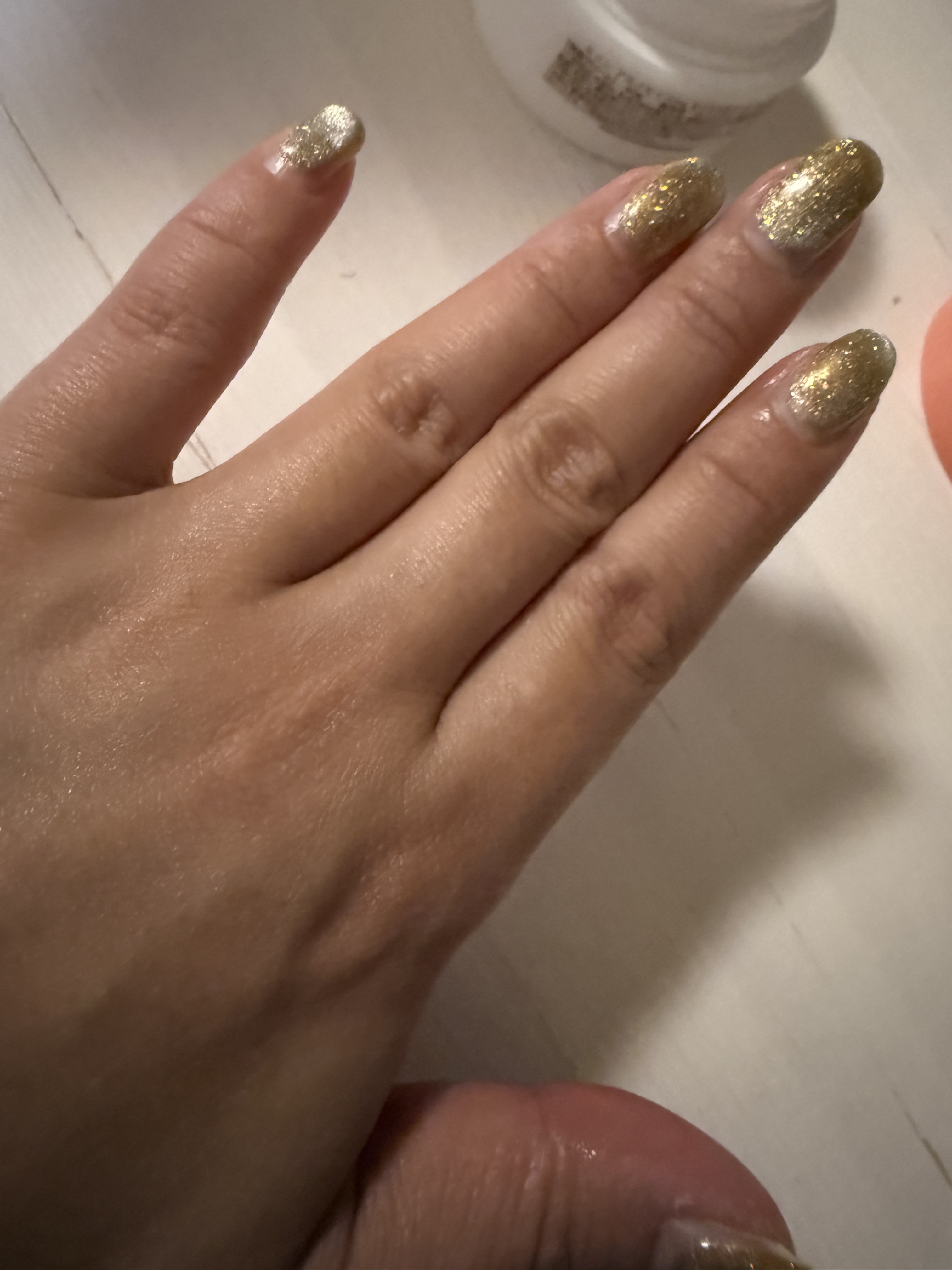 ミラーネイル並に綺麗なんだよね😤❤️ 粉質も本当にしっとりしててイイし! 1色でも本当に可愛い🍀 キラッと光ってて可愛い☺️ ブラシでぬるといい感じにキラッとなりました💕 指塗りだとこんなにキラッキラッなんですよね✨✨✨