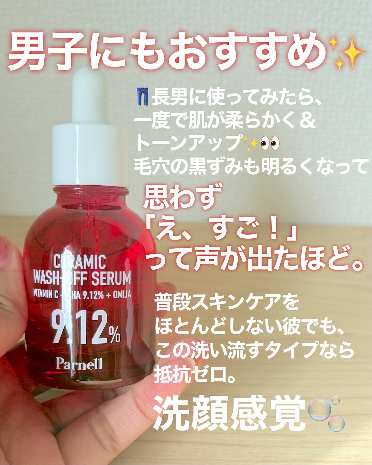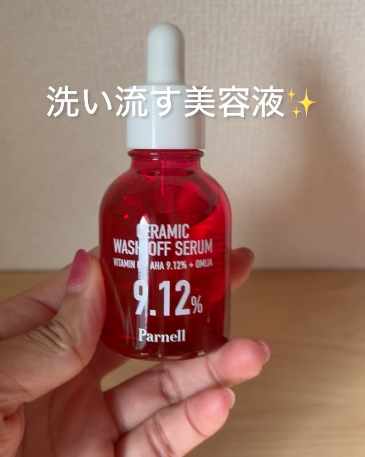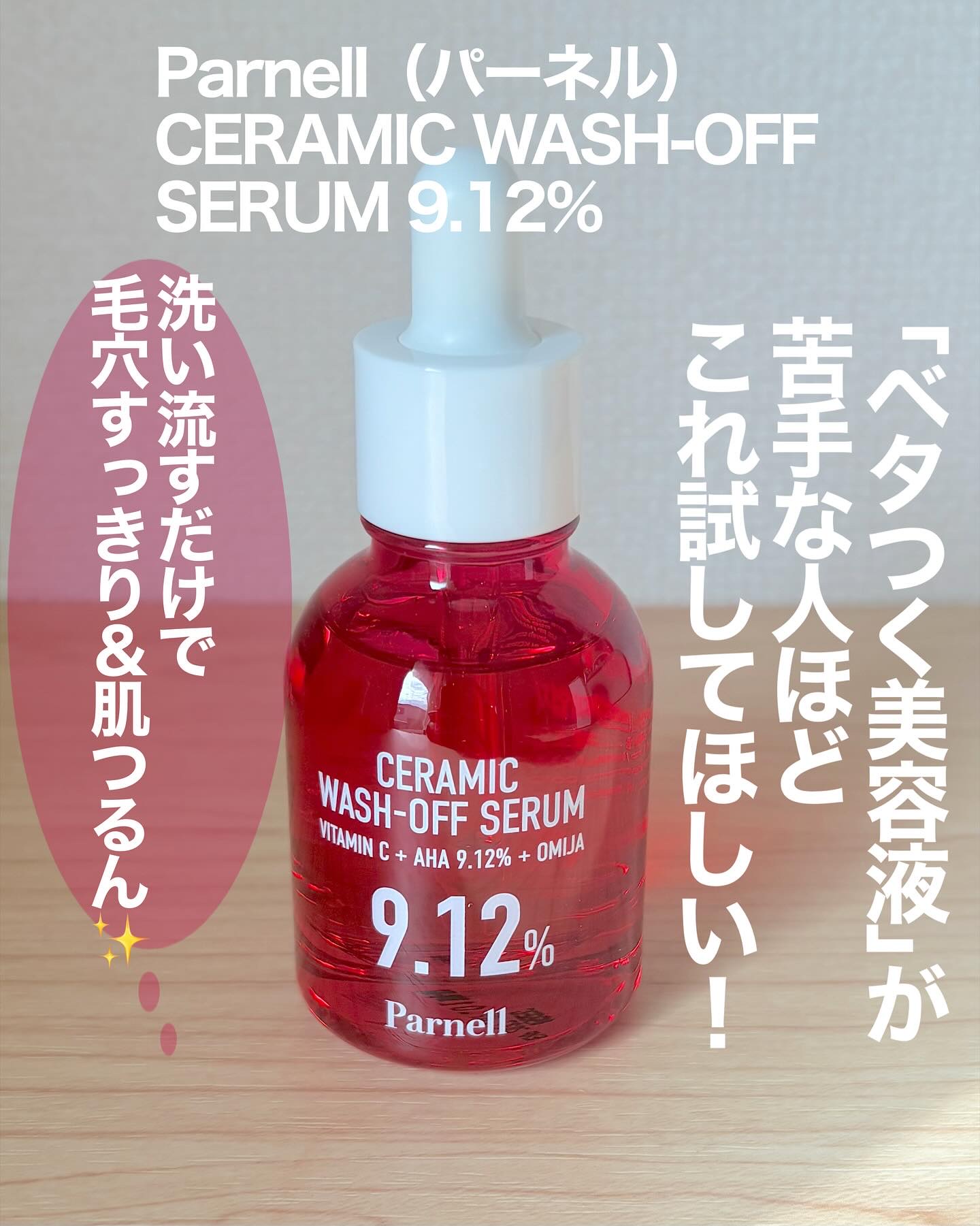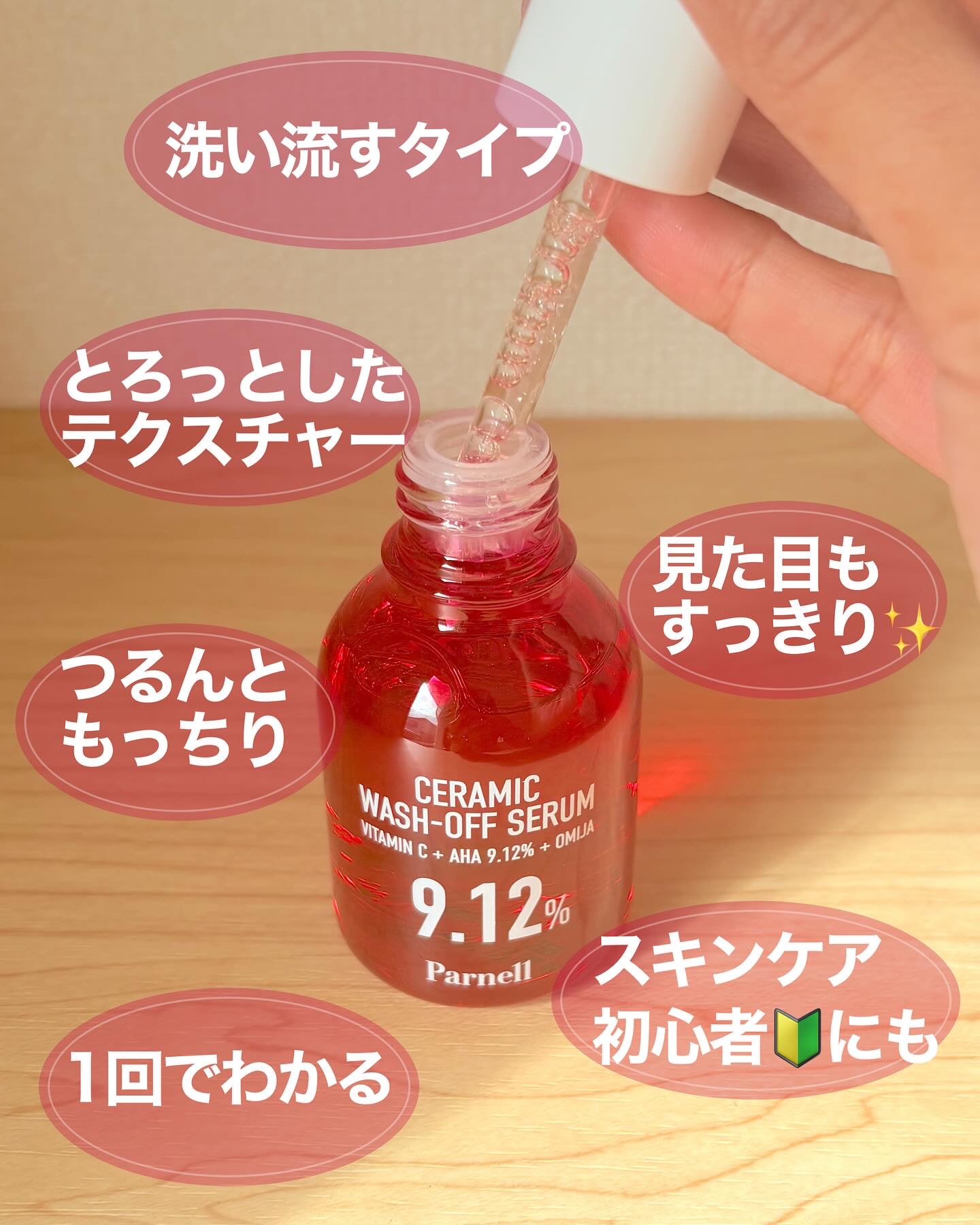 🧪洗い流す美容液、肌つるん革命✨Parnellのセラミックウォッシュオフセラム🩰AHA9.12%+ビタミンC+オミジャエキス配合でごわつき・くすみを優しくケアしてくれる🫧1分おいて洗い流すだけで、肌がつるんっとしてなめらかになるのがクセになる...