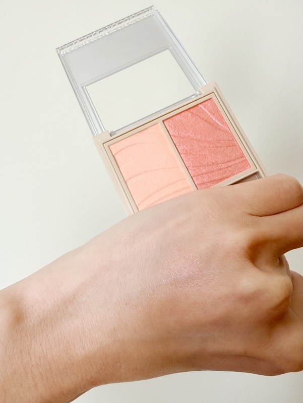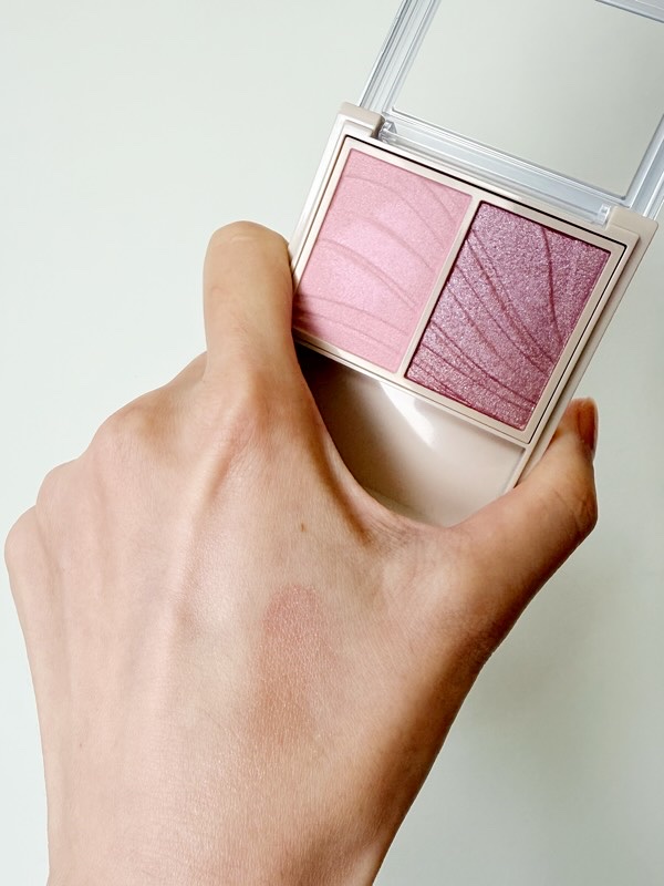 - ベースで頬を整えて色を重ね、花びらのような血色感×立体ツヤを生み出す。 マットベースとパールカラーの 2質感チークカラー。