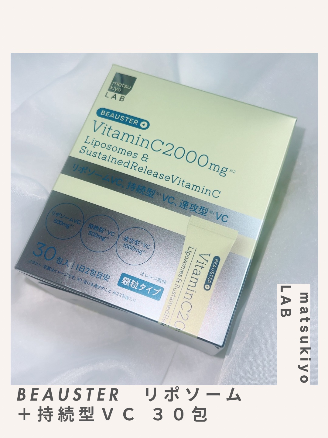 マツキヨココカラPB初の美容サプリメントシリーズ「BEAUSTER」matsukiyoLABBEAUSTERリポソーム+持続型ビタミンC顆粒はリポソーム型、持続型、速攻型の3種のビタミンCを組み合わせた、ビタミンC2,000mg配合。さらにセ...