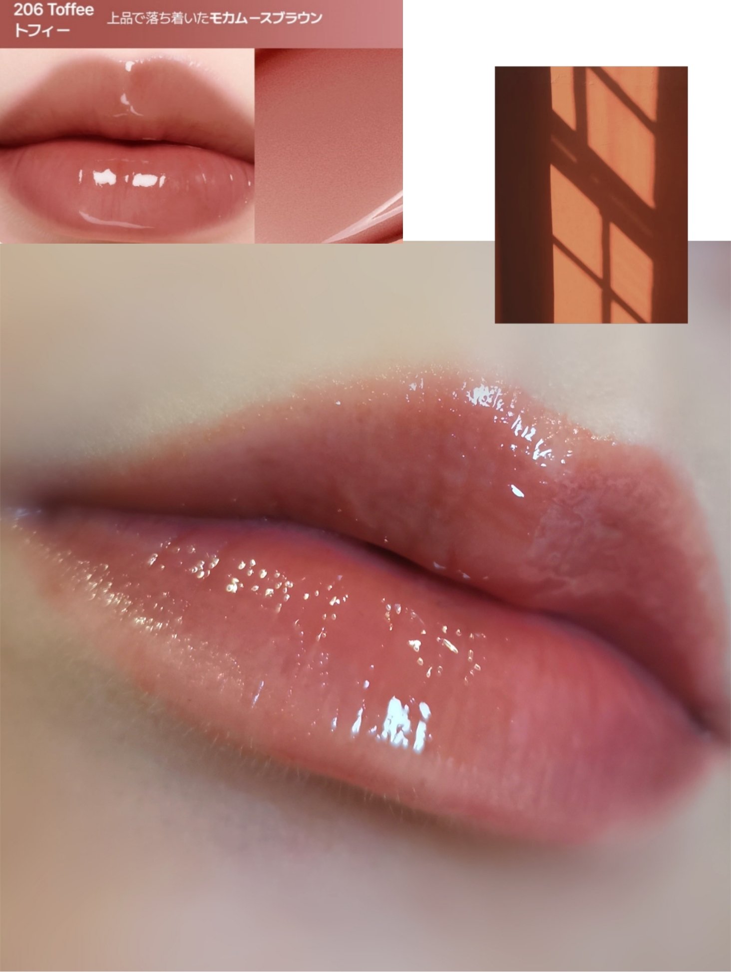 - - 「ティント処方」でつけたての色をキープ。 - まるで露をまとったような水膜ツヤ仕上げ。 - 美容オイル配合でうるおい感が続く。 - 無香料・パラベン不使用・動物由来成分不使用。