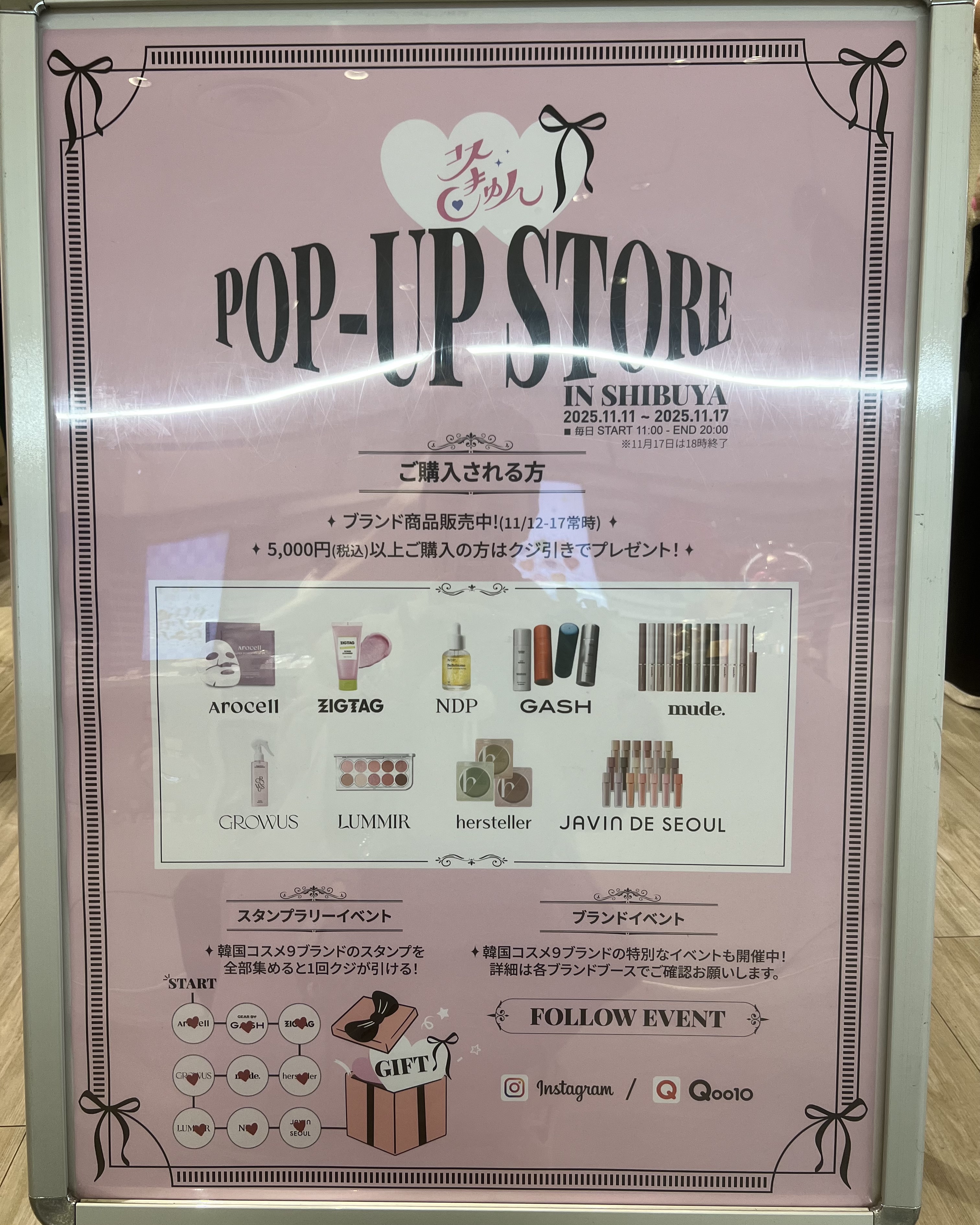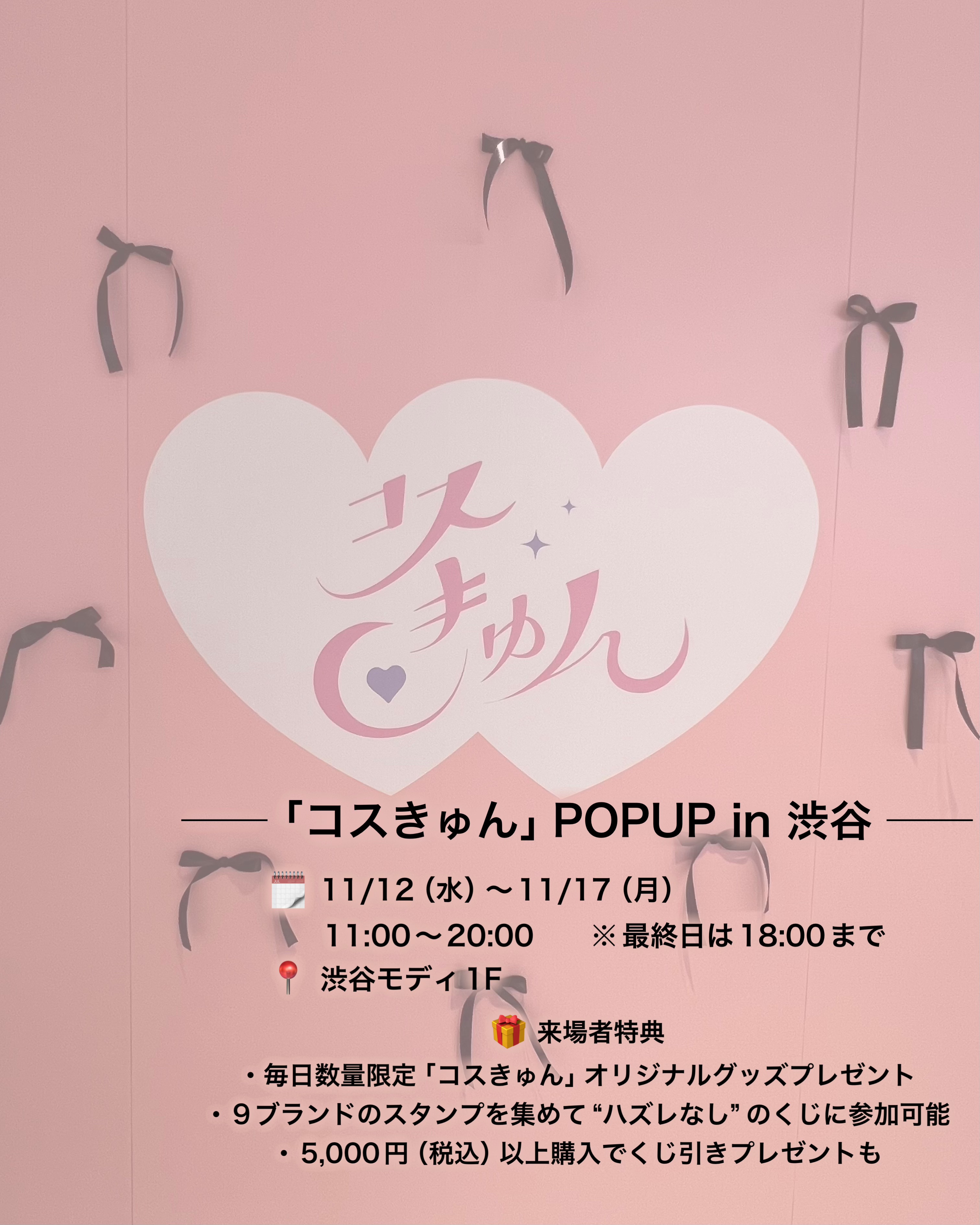 渋谷で開催されている韓国コスメのコスきゅんにご招待いただき参加してきました🎀韓国コスメポップアップストア2025年11月11日(火)~17日(月)11:00〜20:00※最終日は18:00まで渋谷モディ1F9つの韓国コスメが集まった体験型のポ...